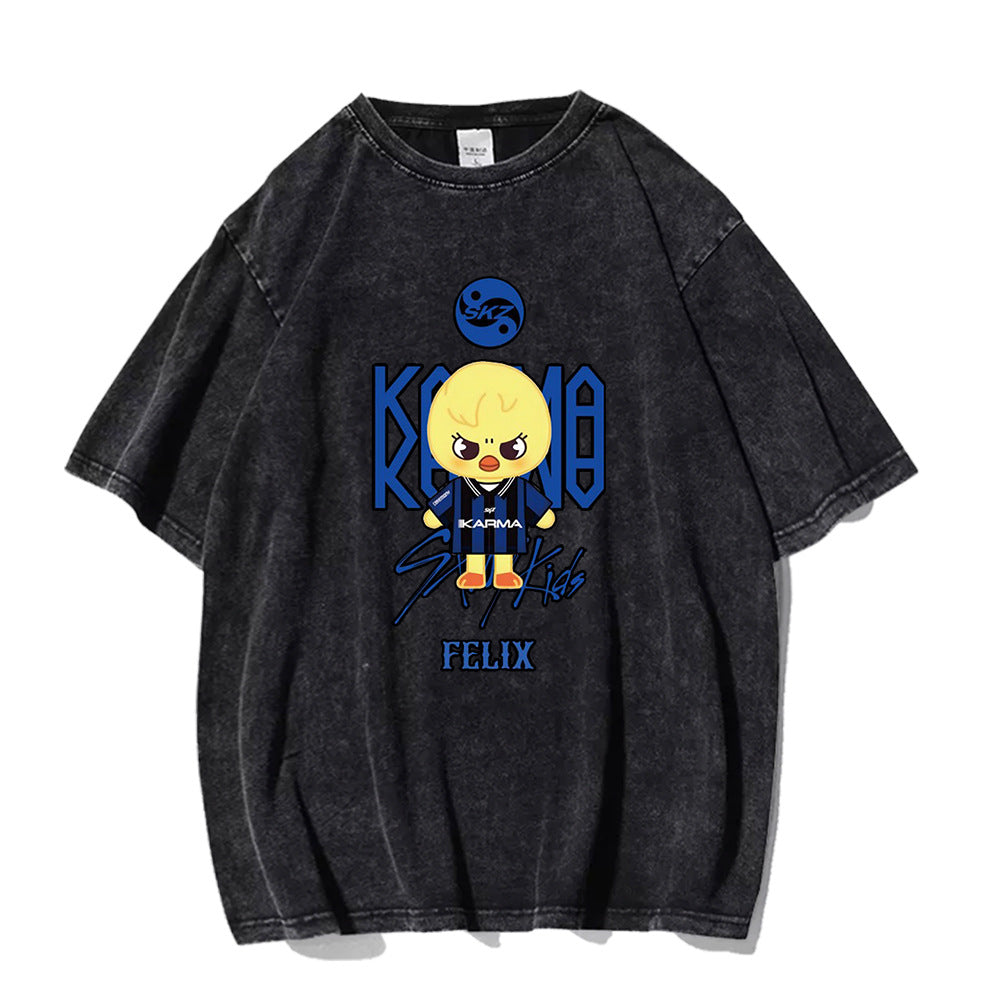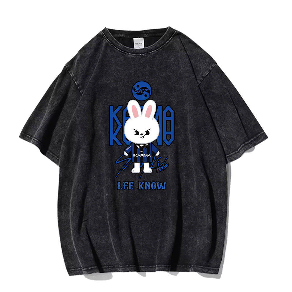 • The KPOP Wolf Chan Bbokari Pattern Washed T-shirt offers a relaxed, loose fit perfect for comfort and casual style. Featuring a distinctive washed effect and unique Bbokari pattern inspired by KPOP aesthetics, this tee combines streetwear edge with softness. Its breathable fabric ensures all-day wearability, making it a versatile addition to any wardrobe seeking an expert blend of trend and ease.