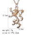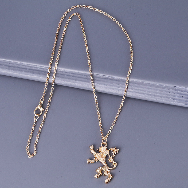 • As a jewelry expert, I present the Lannister Lion Necklace. This accessory boasts a sleek and modern design that exudes a cool and stylish vibe. Made with high-quality materials, it's both eye-catching and durable, making it the perfect addition to any fashion-forward outfit.