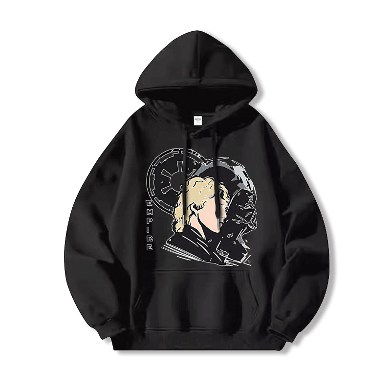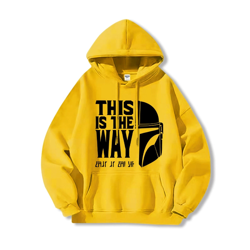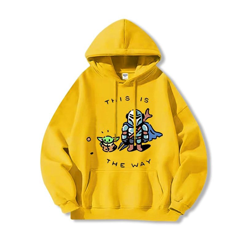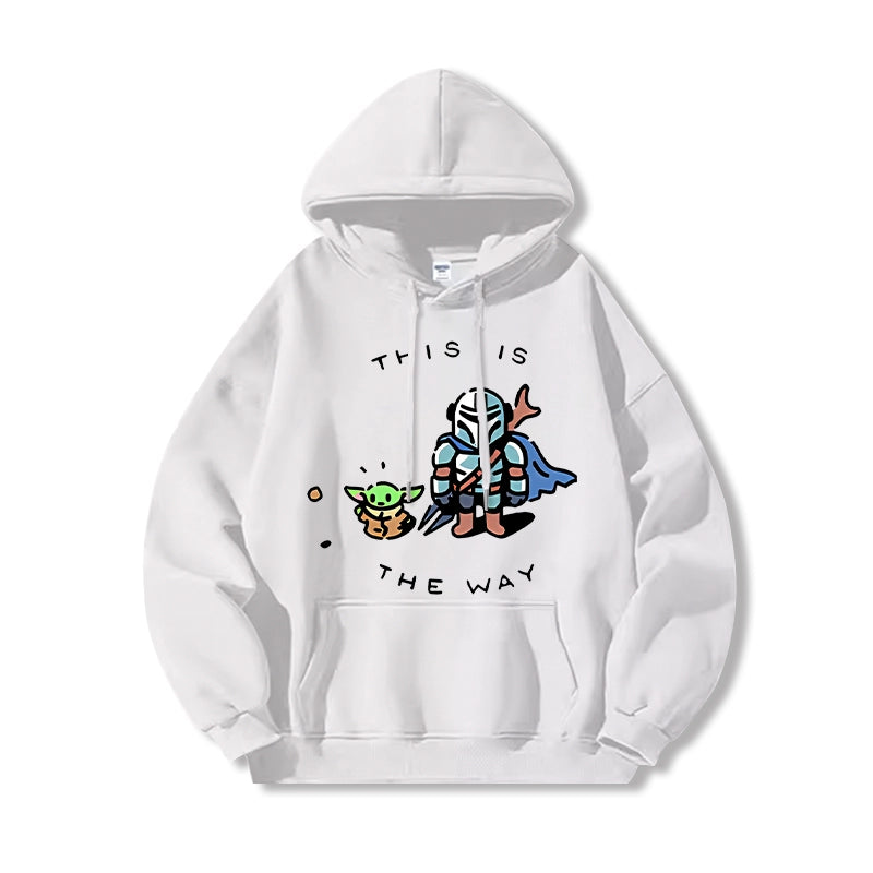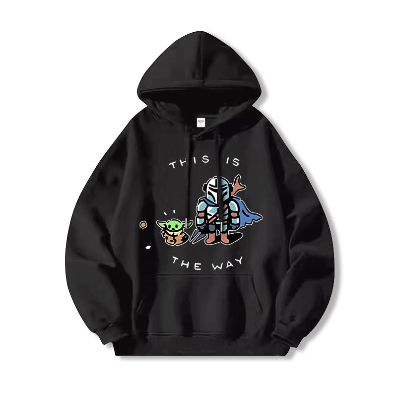 • This Mandalorian Cartoon Print Pullover Hoodie features a loose fit, providing comfort and ease of movement for all-day wear. Made with high-quality materials, it is perfect for any fan of the beloved animated series. Stay warm and show off your love for the Mandalorian with this stylish hoodie.