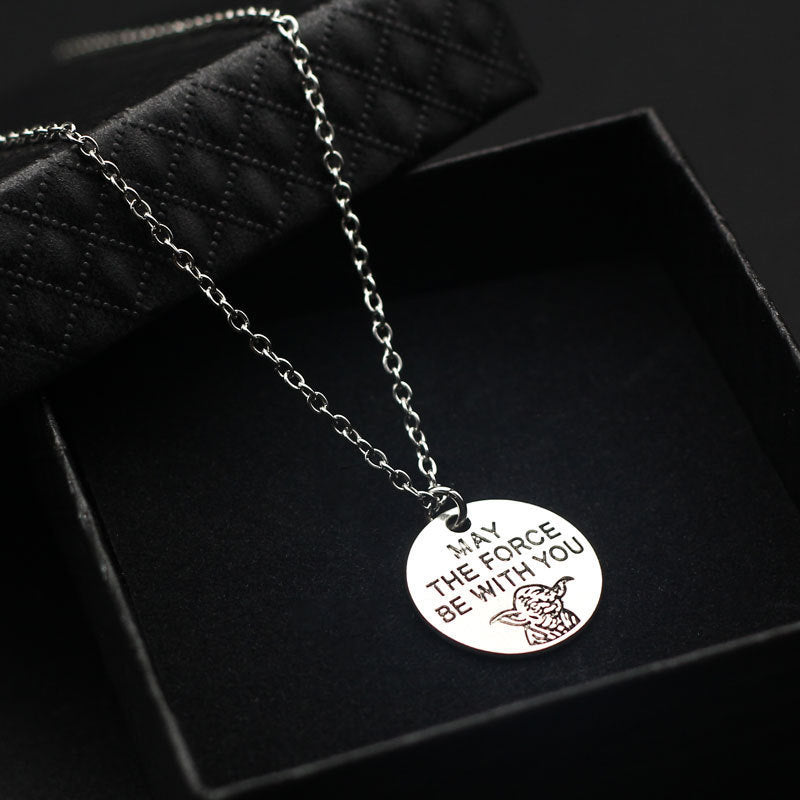 • Introducing the May The Force Be With You Yoda Necklace, the perfect accessory for any Star Wars fan. With its chic design, this necklace is sure to make a statement. Show off your love for the Force with this timeless piece.