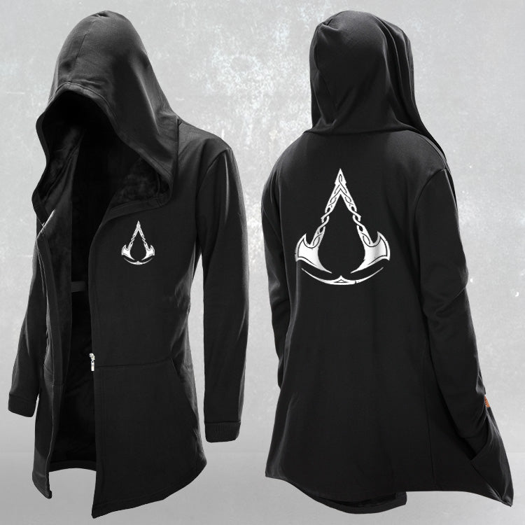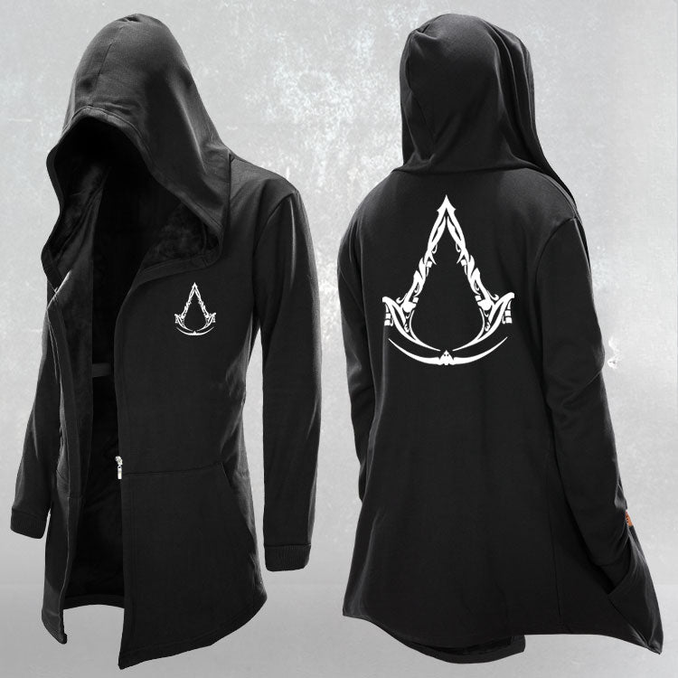 • This Men's Game Assassin Cloak Hoodie is designed with a cool factor in mind. Made with high-quality materials, it provides both comfort and style. Perfect for casual wear or as a statement piece, this hoodie is a must-have for any gamer or fan of the popular game series.
