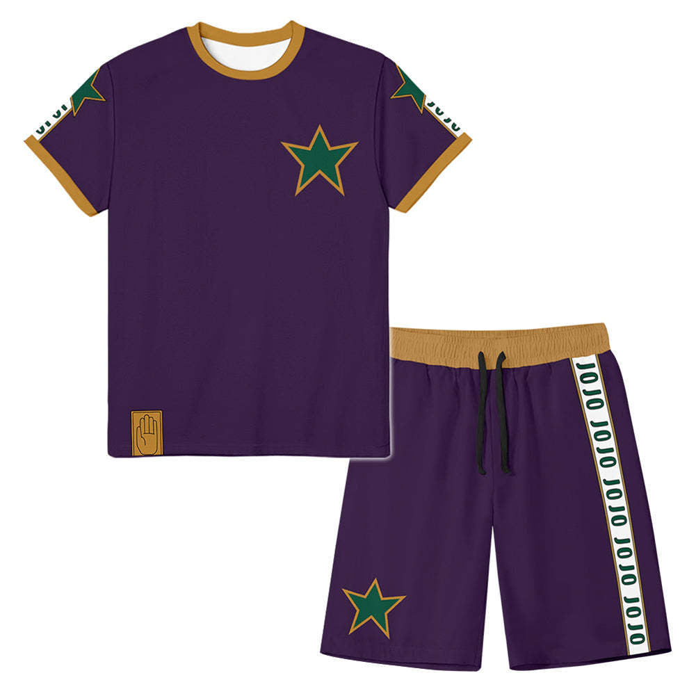 • Experience ultimate comfort and style in our Men's Jotaro Kujo Digital Print T-shirt and Shorts Co-ords Cosplay Costume. Featuring a relaxed fit and casual design, this costume is perfect for any occasion. Embrace your inner character with this high-quality, digitally printed set.
