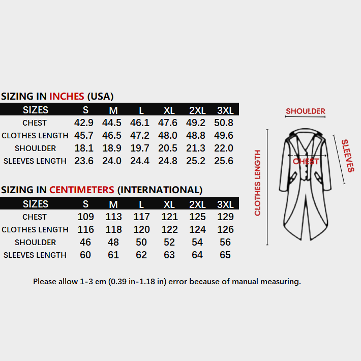 • This Men's Steampunk Medieval Gothic Victorian Era Coat features a stylish collar and intricate floral lace detailing. The high-quality buttons add a touch of sophistication and durability. Elevate your wardrobe with this unique and timeless piece.