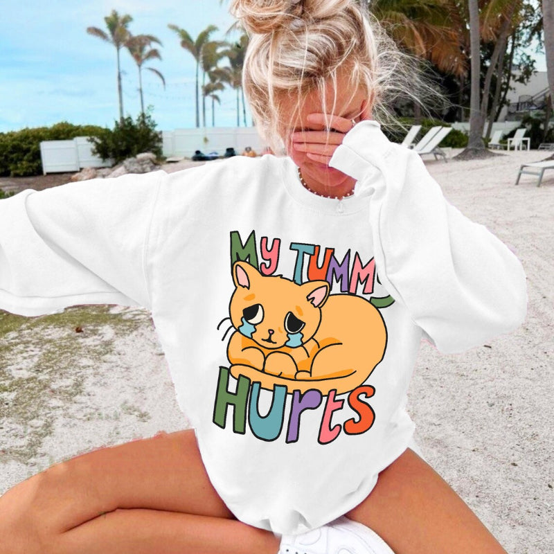 • Experience ultimate comfort with our My Tummy Hurts Cat Crew Neck Sweatshirt. Its loose fit ensures maximum breathability and movement for your feline friend. Keep them cozy and stylish all day long.