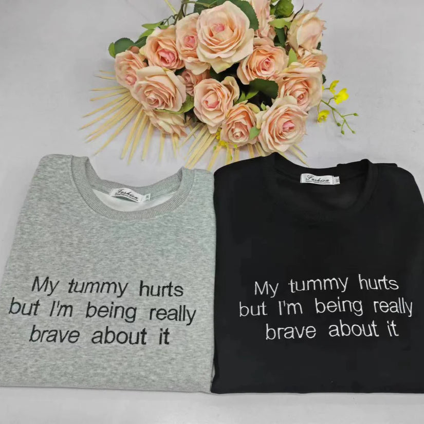 • This 'My Tummy Hurts' sweatshirt makes a funny gift for your girlfriend, wife, or mom! It would look great oversized with leggings or jeans and would make a great gift!