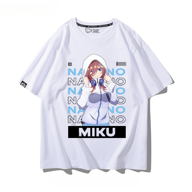 • This Nakano Anime Short-sleeved T-shirt offers a casual and comfortable style perfect for everyday wear. Crafted with high-quality materials for durability and comfort, this t-shirt is a must-have for anime fans. With a relaxed fit and short sleeves, it offers a versatile and practical option for any casual outfit.