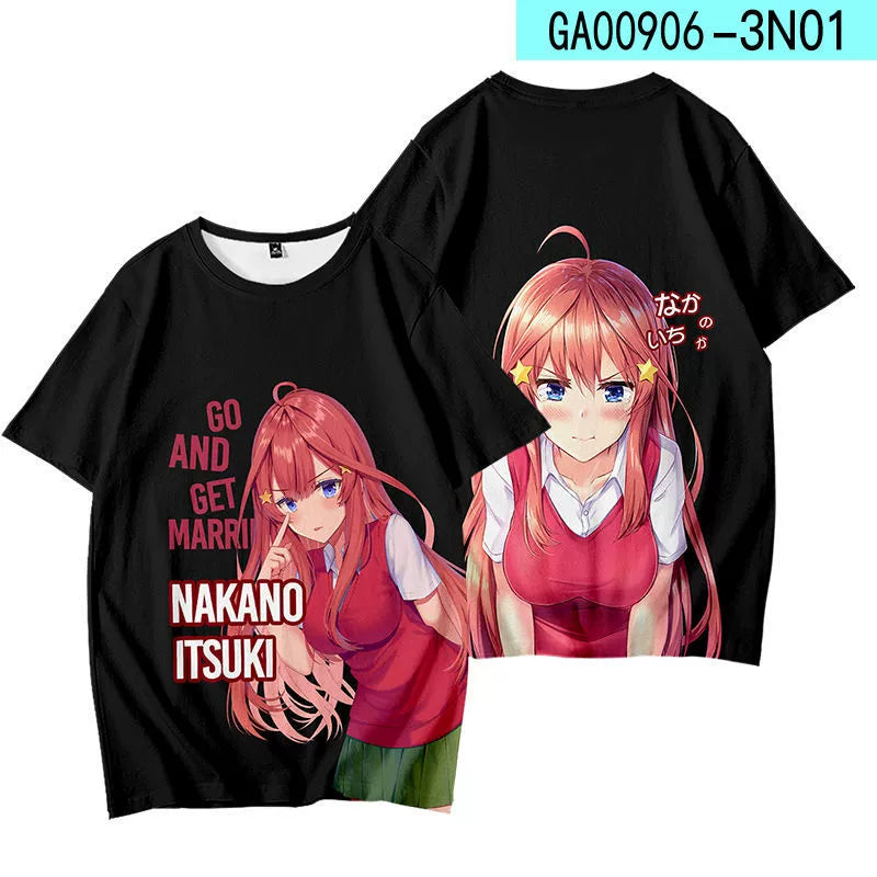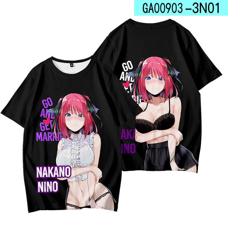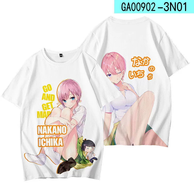 • The Nakano Short-sleeved Cosplay T-shirt boasts a loose fit, providing ultimate comfort and mobility. Expertly designed for cosplay enthusiasts, this shirt allows for a seamless transformation into any character. Elevate your cosplay game with this must-have wardrobe staple.