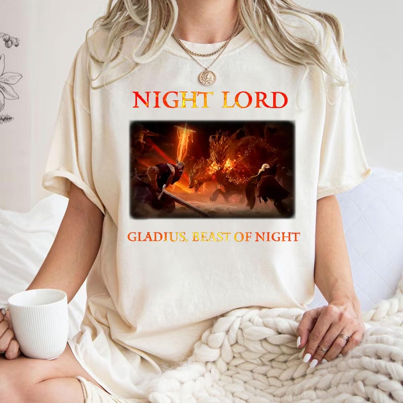 • Experience comfort and style with the Nightreign Night Lord Print Unisex T-Shirt. Crafted for a relaxed fit, this tee combines soft fabric with a striking graphic design, making it perfect for casual wear or layering. Its unisex cut ensures a flattering silhouette for all, while the durable print maintains its bold look wash after wash. Ideal for those who appreciate both comfort and distinctive style in their everyday wardrobe.