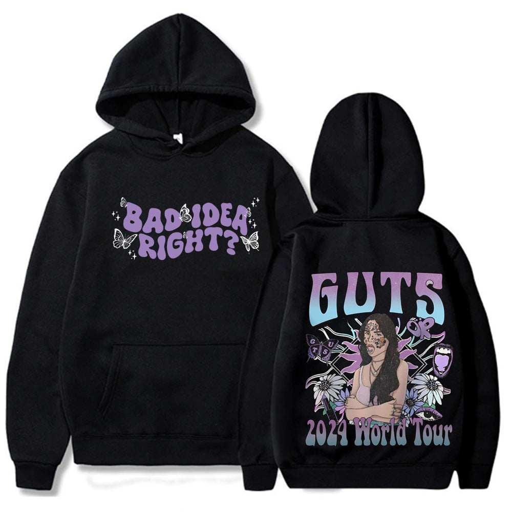 • This Olivia Guts World Tour Pullover Hoodie features a loose fit for all-day comfort and flexibility. Perfect for on-the-go activities or lounging, the hoodie allows for greater movement and breathability. Its versatile style makes it a must-have addition to any wardrobe.