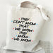 With a roomy interior, and a quote that always starts a conversation, this tote is perfect for carrying your essentials (and your opinions).