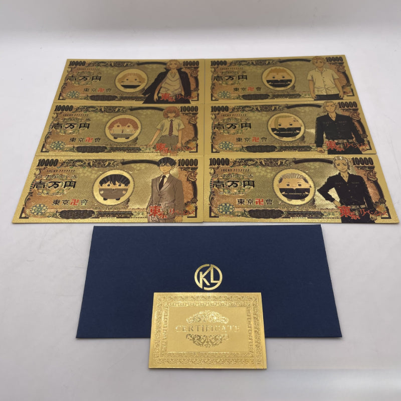 • Introducing the Plastic Gold Foil Banknotes Collection! This limited edition collection features beautifully designed banknotes inspired by popular ANIME shows. Made with high-quality plastic and gold foil, it's a must-have for any ANIME fan. Add this unique collection to your display and let your love for ANIME shine!