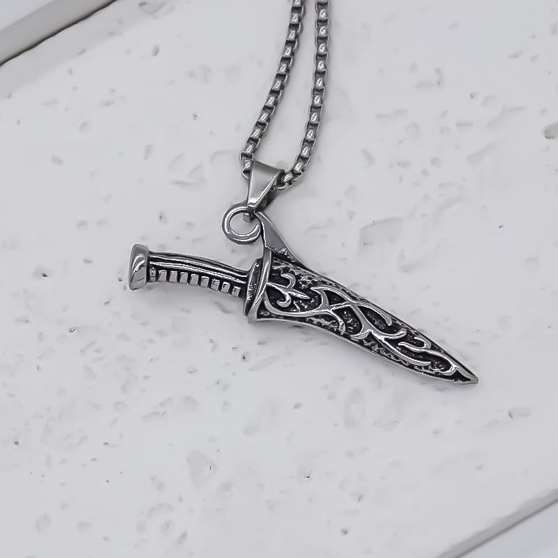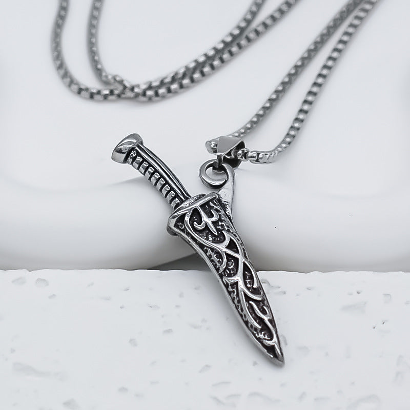 • This retro dagger pendant necklace makes a statement with its cool design. Crafted with precision, it adds a touch of edginess to any outfit. Made for the fashion-forward, it's a must-have accessory to elevate your style game.