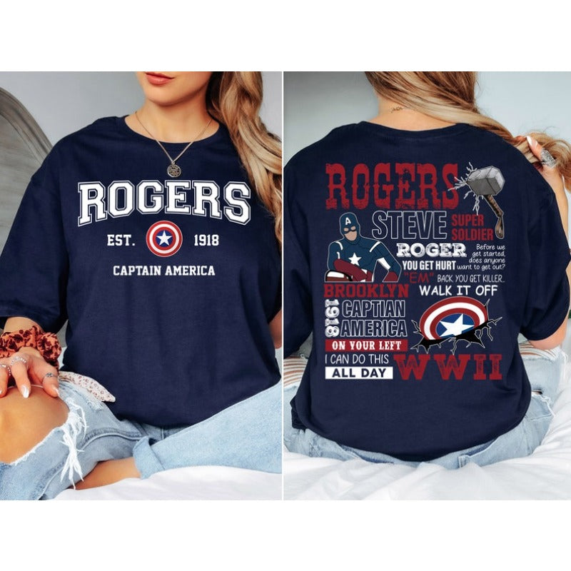 • This Rogers Captain America Short Sleeve T-Shirt combines iconic superhero style with everyday comfort. Crafted from breathable fabric, it offers a relaxed fit that ensures ease of movement and all-day wearability. Perfect for fans seeking a casual yet authentic look, this tee showcases detailed graphics that celebrate the legendary Captain America, making it a standout addition to any wardrobe.