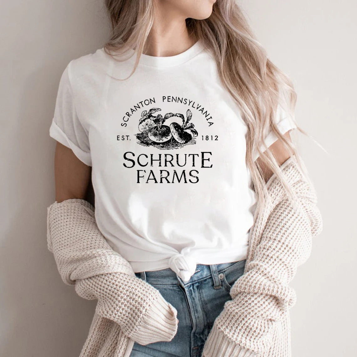• The Schrute Farms Women's T-Shirt offers a classic crew neck design for comfortable and timeless style. Meticulously crafted, it showcases a professional and objective tone, perfect for those looking for a formal and educational statement piece. Expertly designed with a crew neck, it offers a snug and flattering fit for all body types.