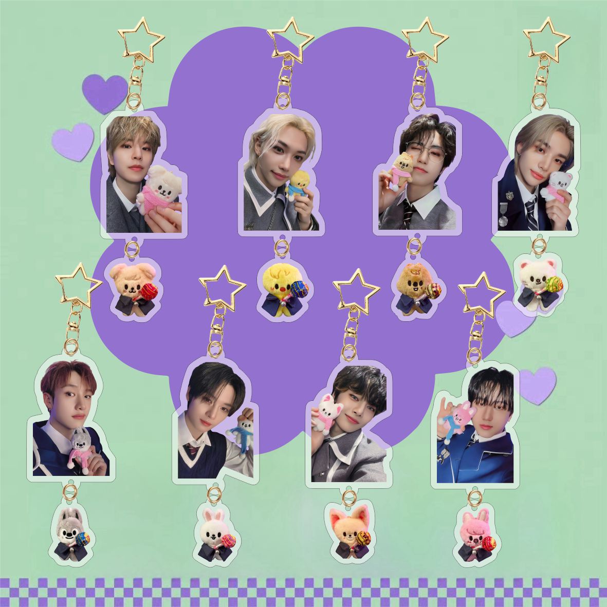 • Add a charming touch to your keys or bags with the SKZ Acrylic Keychain Pendant. Crafted from clear, durable acrylic, this lightweight accessory showcases a sleek design that resists scratches and maintains its shine. Perfect for fans seeking a subtle yet stylish way to display their enthusiasm, it combines practicality with a delicate aesthetic that complements any personal style.