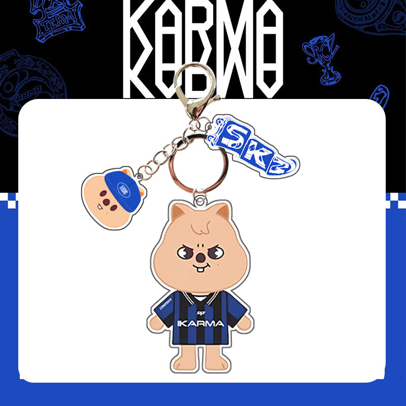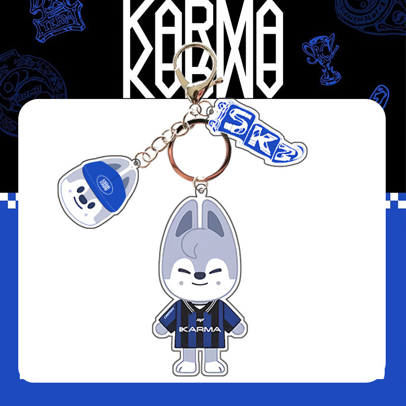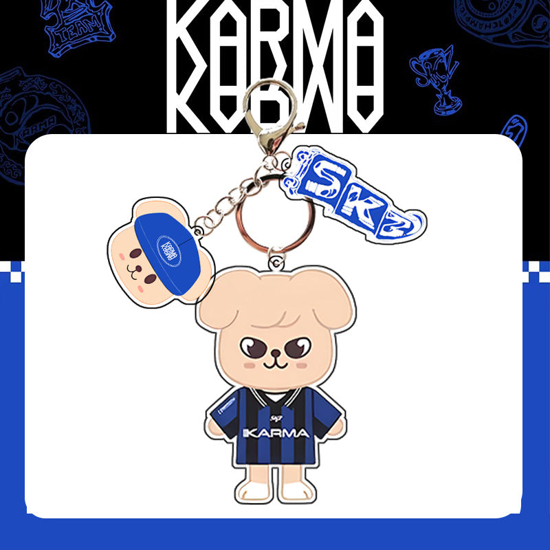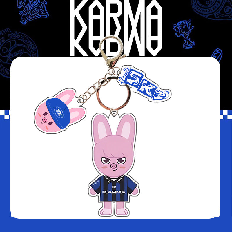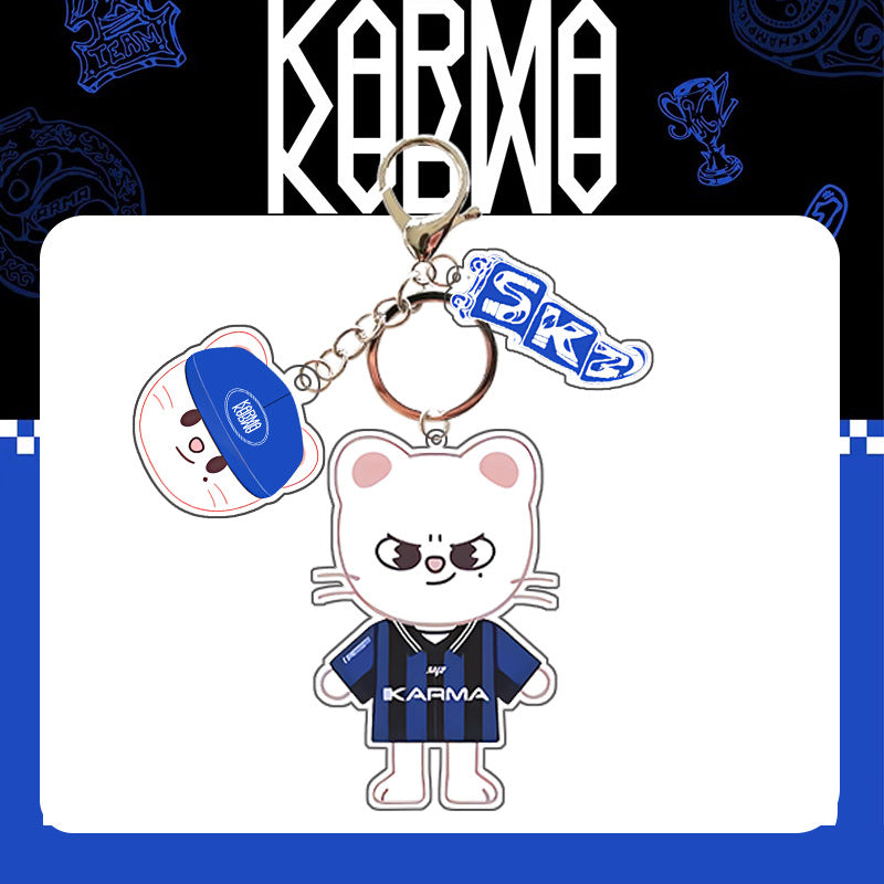 • This SKZ Album "KARMA" Acrylic Pendant offers a charming way to carry your favorite K-pop memories. Crafted with clear, durable acrylic, it showcases vibrant album artwork in a sleek pendant design. Perfect for fans seeking a stylish accessory that celebrates their passion while adding a playful touch to any outfit.