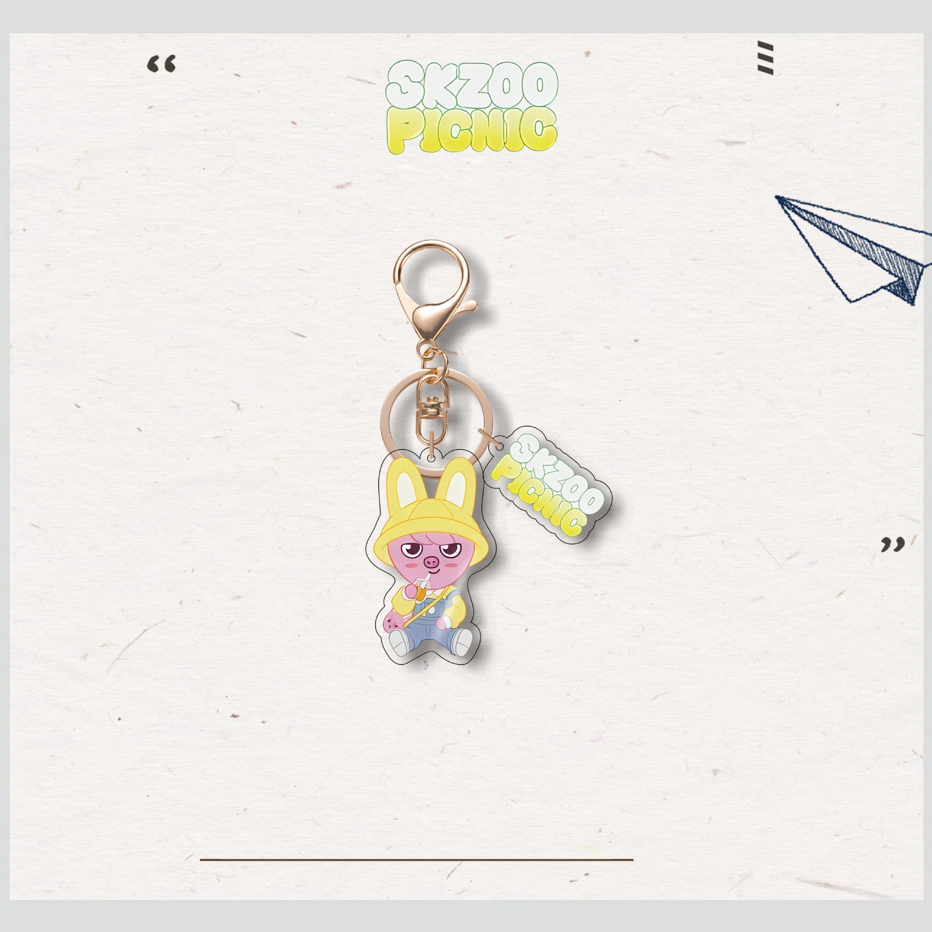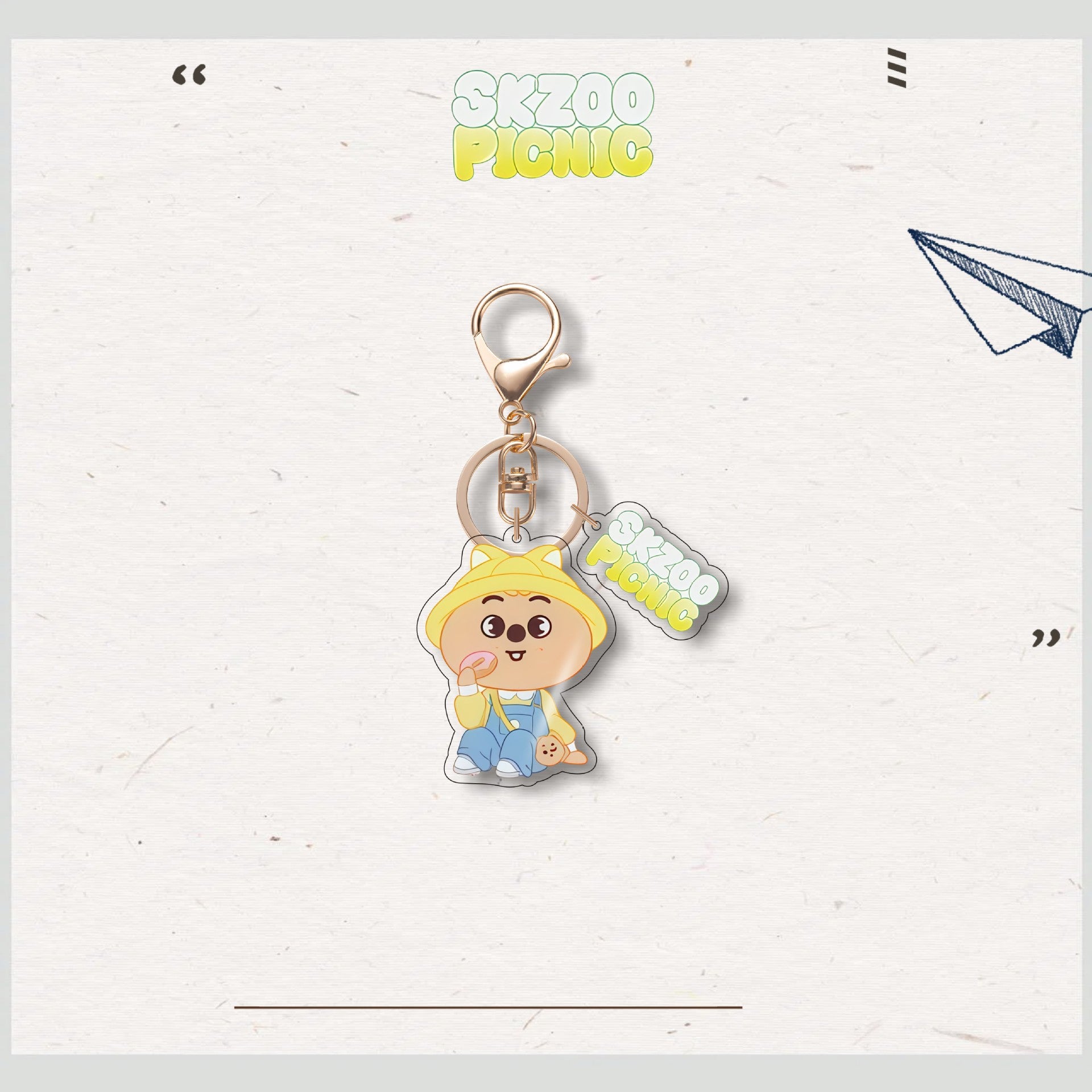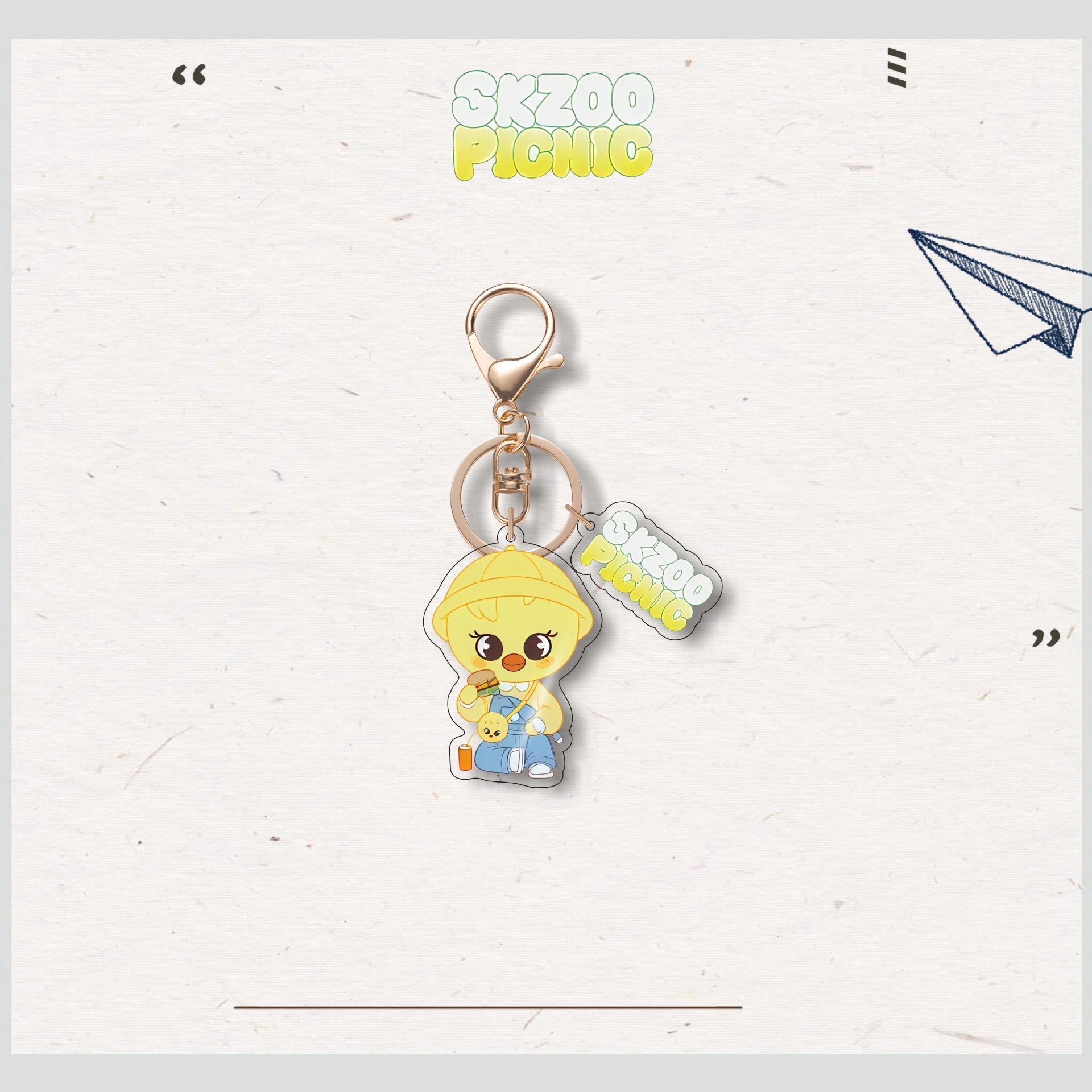 • Add a charming touch to your accessories with the SKZ Animal Characters Picnic Acrylic Keychain Pendant. Crafted with durable acrylic, this keychain features an adorable picnic-themed design that brightens your keys or bags. Its compact size makes it easy to carry, while the vibrant colors and smooth finish ensure it stands out with a cute, playful vibe. Perfect for fans and collectors alike, this pendant combines functionality with delightful aesthetics.