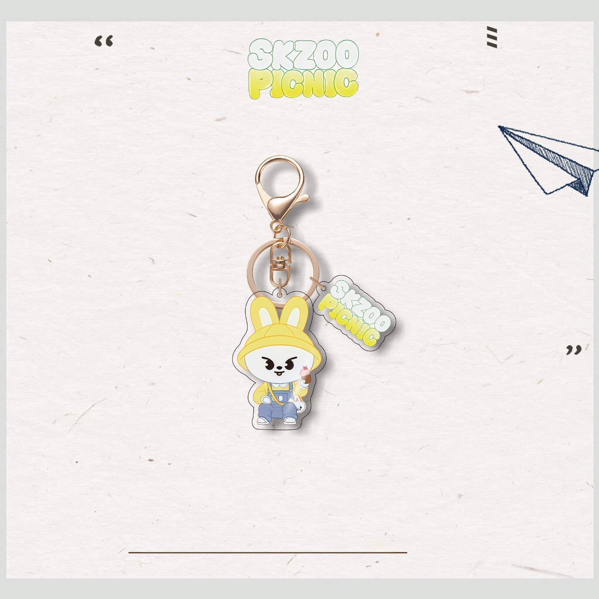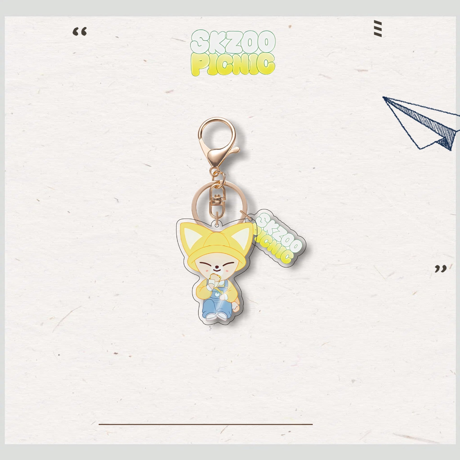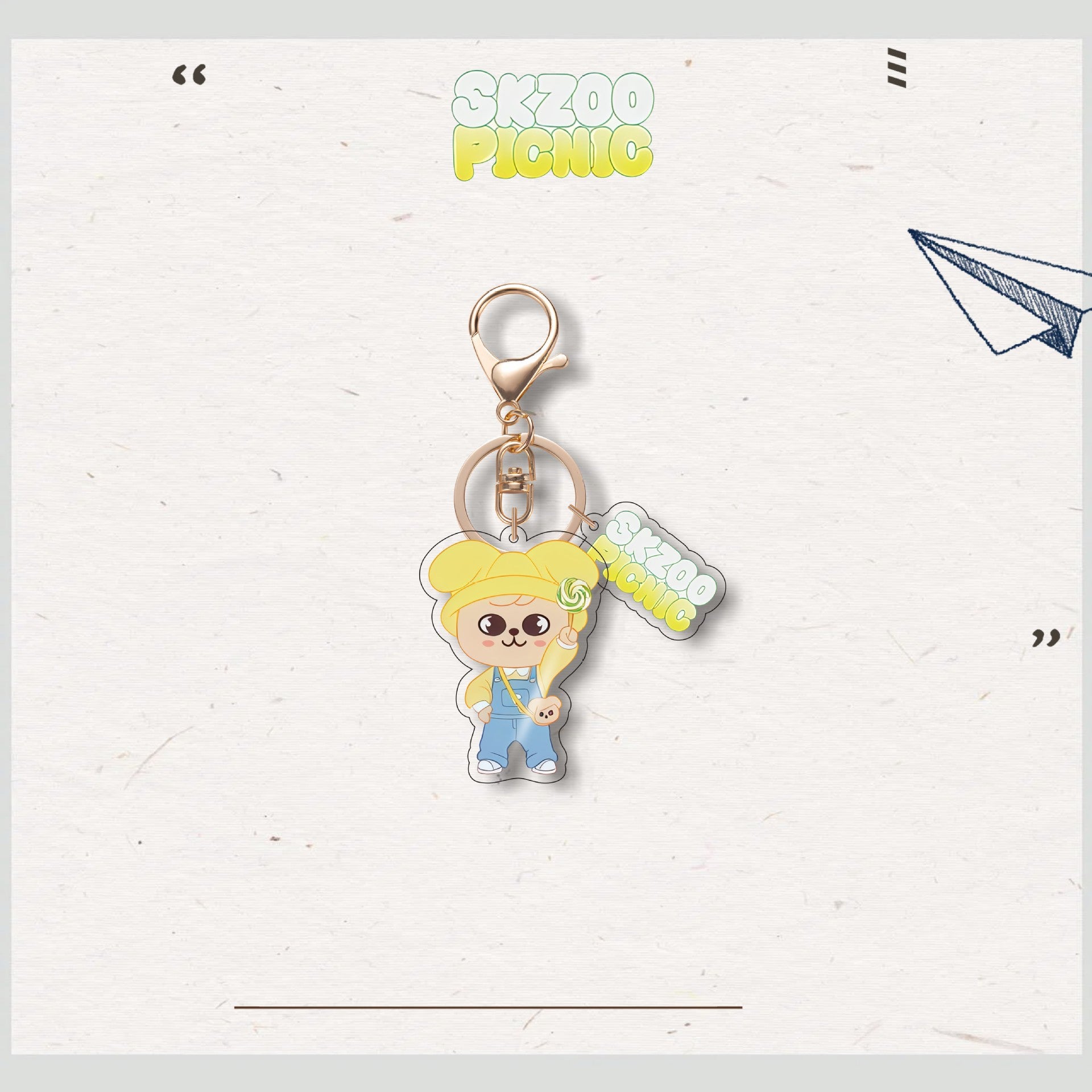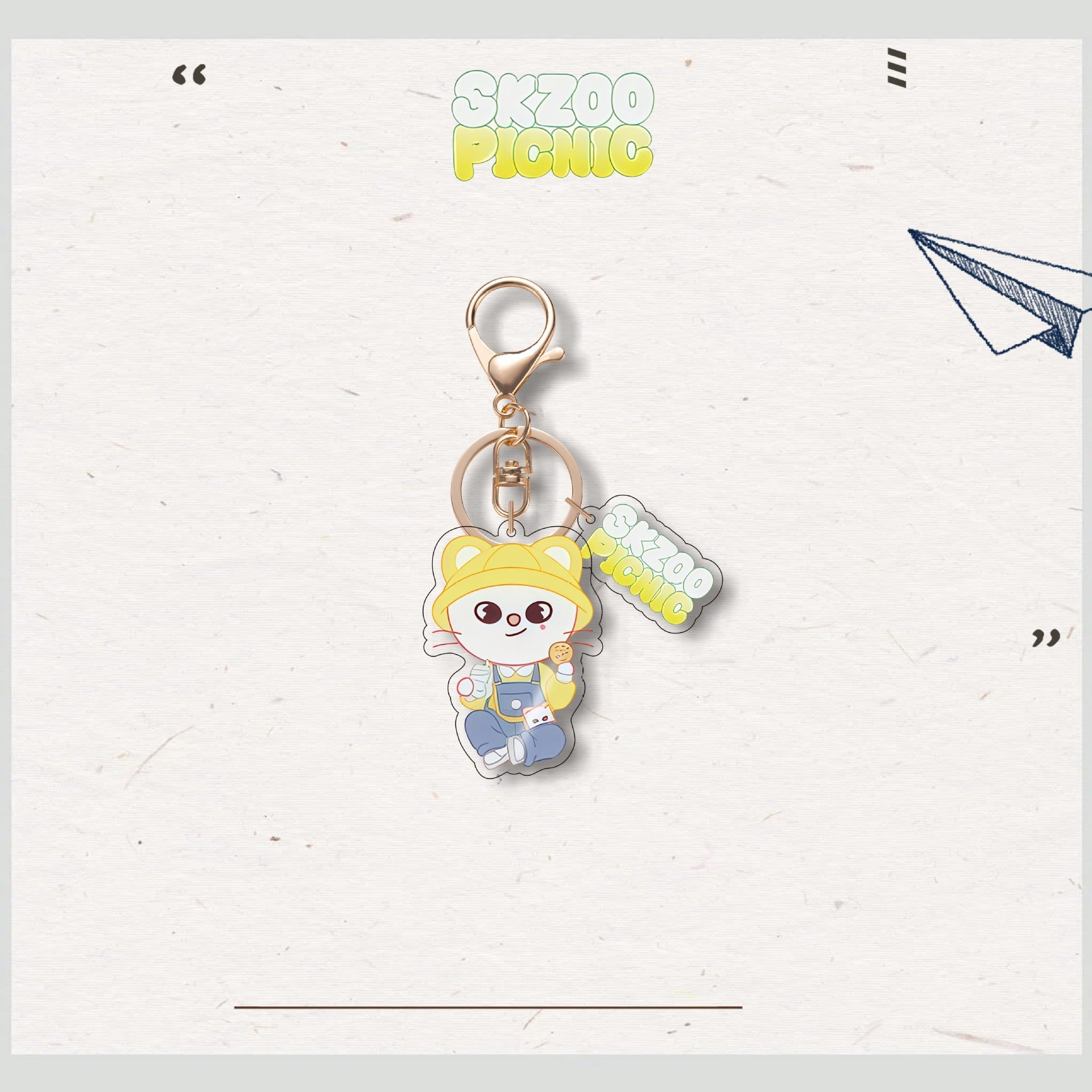 • Add a charming touch to your accessories with the SKZ Animal Characters Picnic Acrylic Keychain Pendant. Crafted with durable acrylic, this keychain features an adorable picnic-themed design that brightens your keys or bags. Its compact size makes it easy to carry, while the vibrant colors and smooth finish ensure it stands out with a cute, playful vibe. Perfect for fans and collectors alike, this pendant combines functionality with delightful aesthetics.