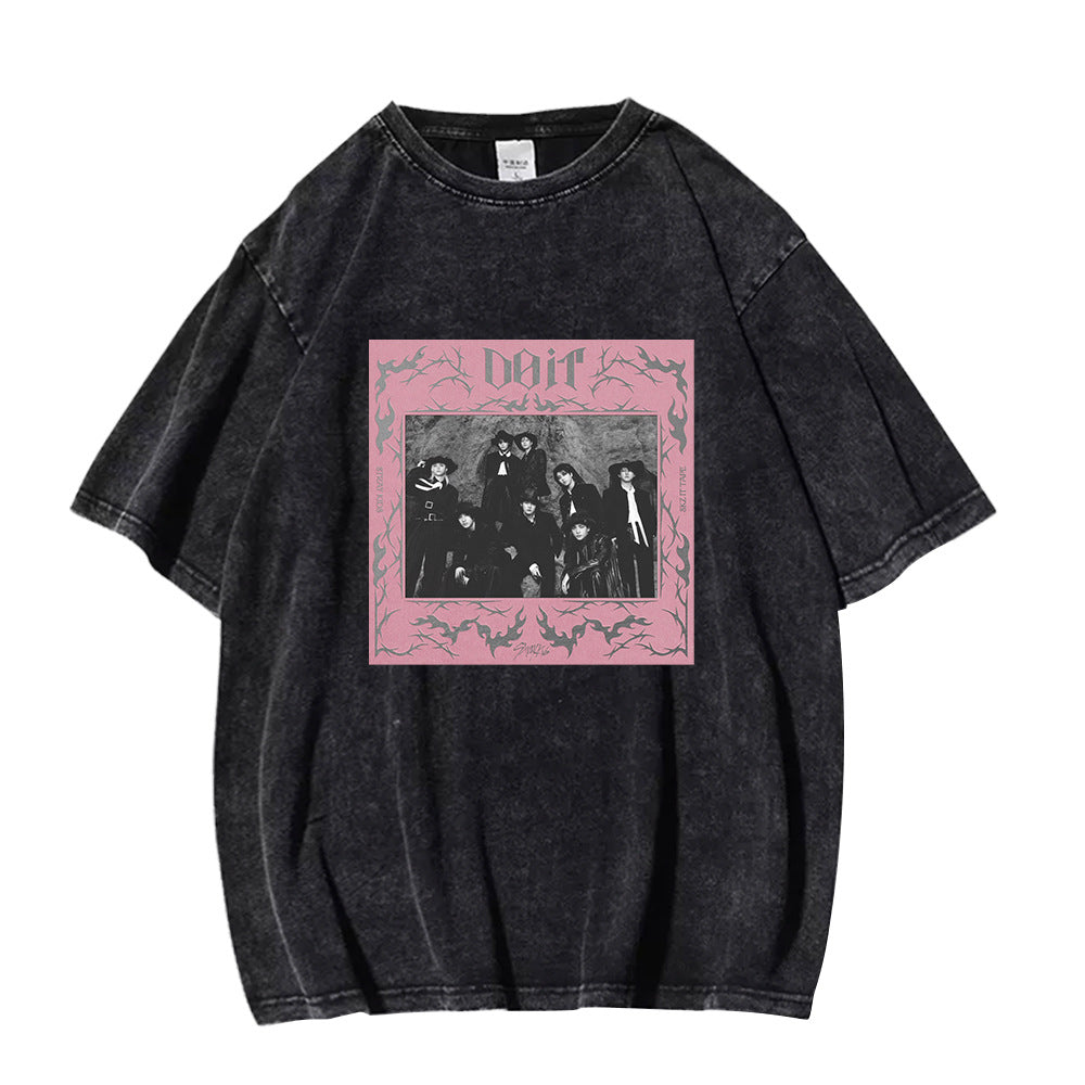 • The SKZ 'DO IT' Printed Washed T-shirt combines casual style with a vintage vibe, featuring a distinctive washed finish that adds character to your everyday look. Crafted for comfort and durability, this tee reflects your passion for K-pop culture. Perfect for fans seeking a relaxed yet stylish wardrobe staple.