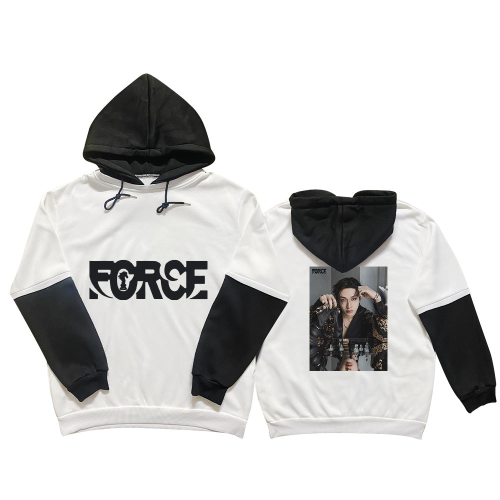 • SKZ FORCE Poster Black and White Sleeves Hoodie Channel your inner fan with this striking hoodie that merges bold graphic design with everyday comfort. Featuring a dramatic black and white poster aesthetic across the chest and sleeves, this piece makes an unmistakable statement. The contrasting sleeve graphics add visual depth while maintaining a cohesive monochromatic palette that pairs effortlessly with any wardrobe. Crafted for both style and functionality, it's an essential layer for dedicated supporters who refuse to compromise on attitude or quality.