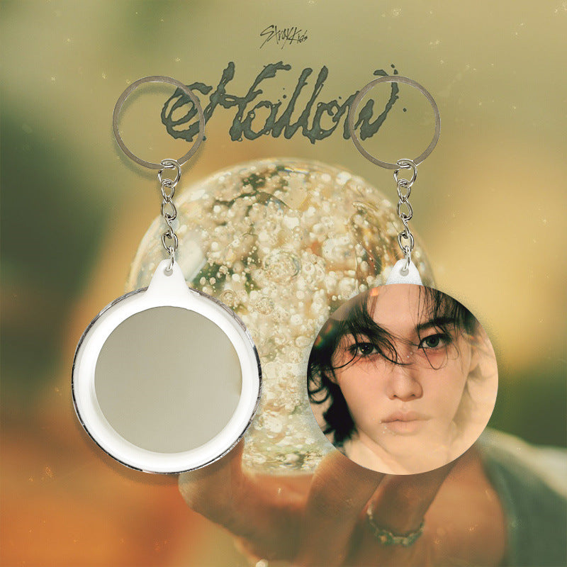 • SKZ "Hollow" Badge Mirror Keychain Elevate your everyday carry with this sophisticated mirror keychain, featuring an intricately designed hollow badge that captures light beautifully. The polished reflective surface serves both aesthetic and practical purposes, while the durable keychain attachment ensures reliable daily use. Perfect for fans seeking a refined accessory that combines functional elegance with distinctive style. A versatile piece that transitions seamlessly from bag to keys, adding a touch of understated luxury to your essentials.