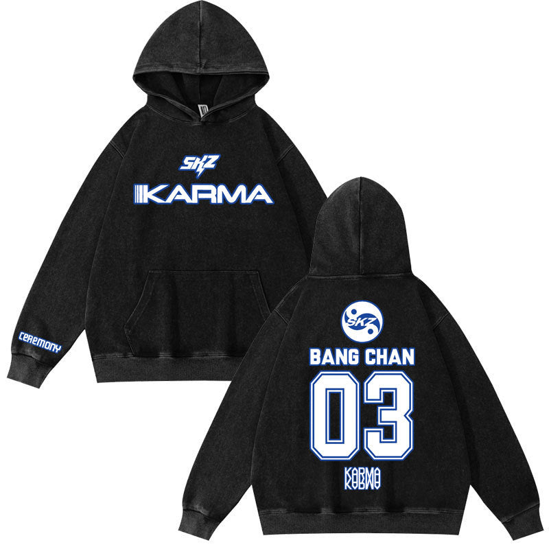 Embrace effortless style with this washed hoodie top featuring the iconic SKZ KARMA logo. Crafted from soft, comfortable fabric, this piece delivers a relaxed fit perfect for casual wear or layering. The vintage-inspired wash gives it a lived-in aesthetic that pairs seamlessly with any wardrobe. Whether you're heading out or staying in, this hoodie combines comfort and contemporary design for everyday versatility.