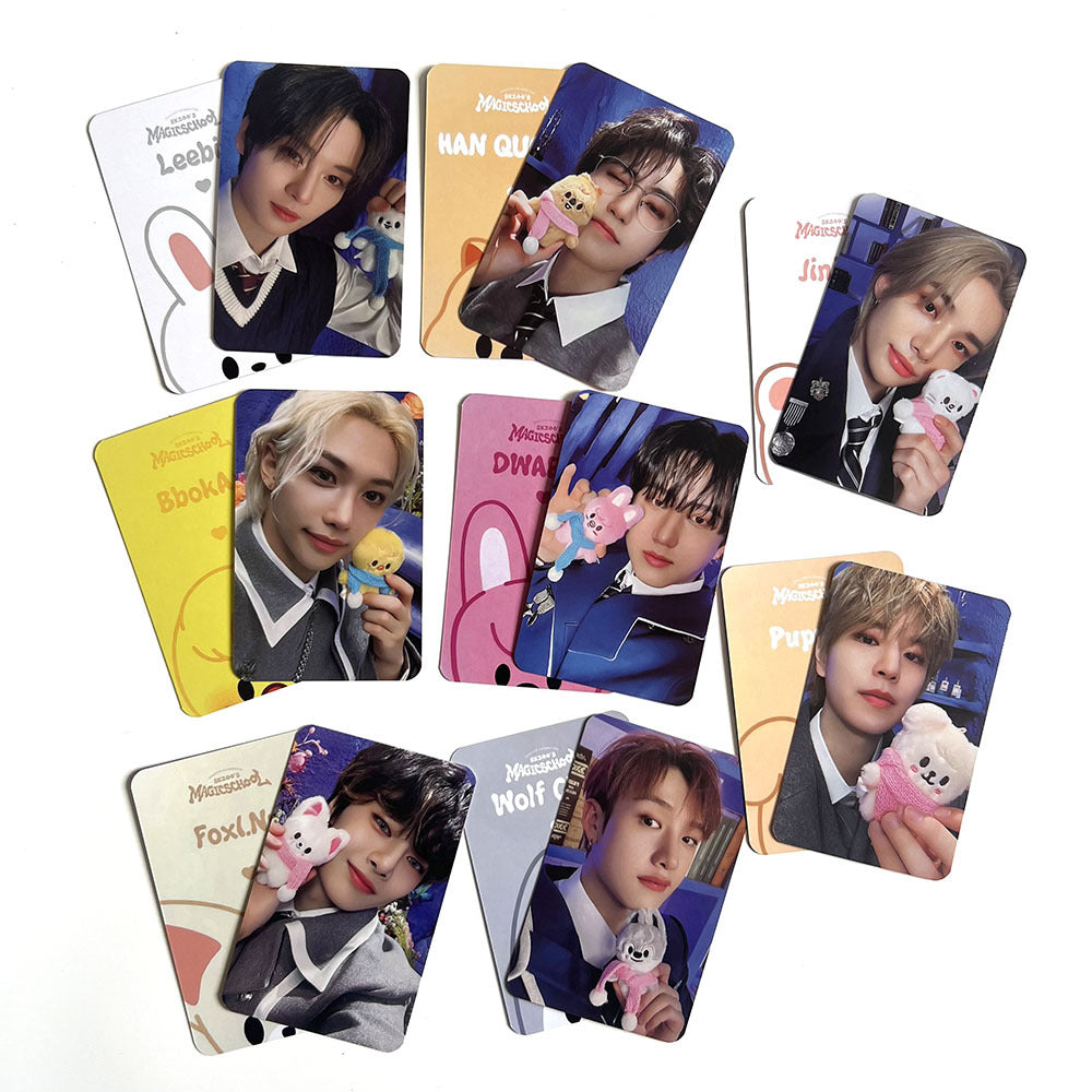 • Capture the charm of SKZ MAGIC SCHOOL with these official photocards. Each card features vibrant, high-quality images that showcase the group's unique style and charisma. Perfect for collectors and fans, these photocards add a delightful touch to your collection or fan display. Durable and easy to handle, they make an ideal keepsake or gift for any SKZ enthusiast.
