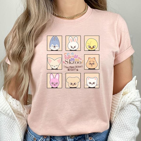 • Skz Stay Printed Unisex Tee Rock your fandom with this versatile unisex tee featuring bold Stay branding. Crafted from quality cotton blend fabric, it delivers comfort for everyday wear while making a statement. The classic crew neck and relaxed fit work for any occasion—whether you're heading out with friends or keeping it casual at home. Perfect for fans who want to express their passion without compromising on style or comfort. Available in multiple sizes to ensure the ideal fit for everyone.