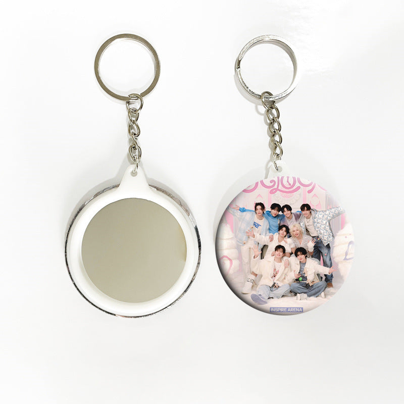 • Adorable tinplate badge featuring your favorite SKZ moments, perfectly sized for keys, bags, or collections. This round mirror keychain combines cute character designs with practical functionality—a must-have accessory for dedicated fans. Durable tinplate construction ensures long-lasting charm, while the reflective mirror back adds a playful twist. Lightweight and portable, it's the ideal way to carry your bias with you everywhere. Perfect for gifting or personal enjoyment.
