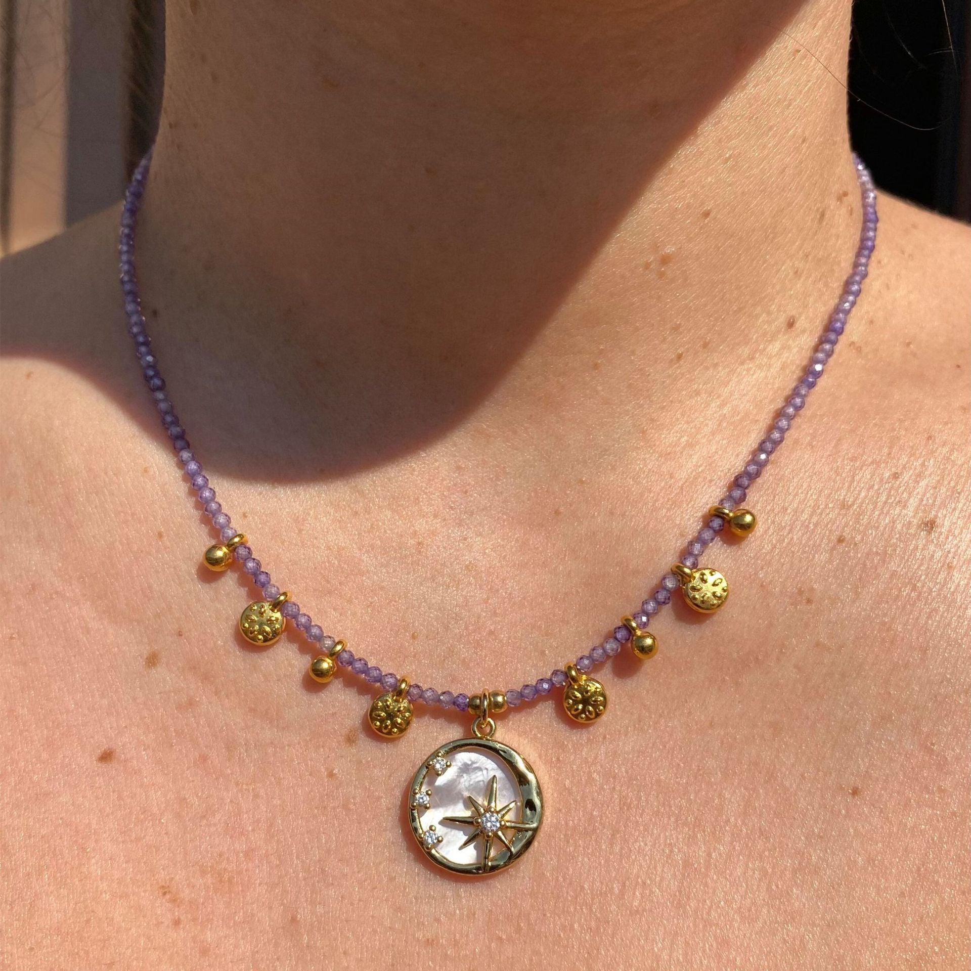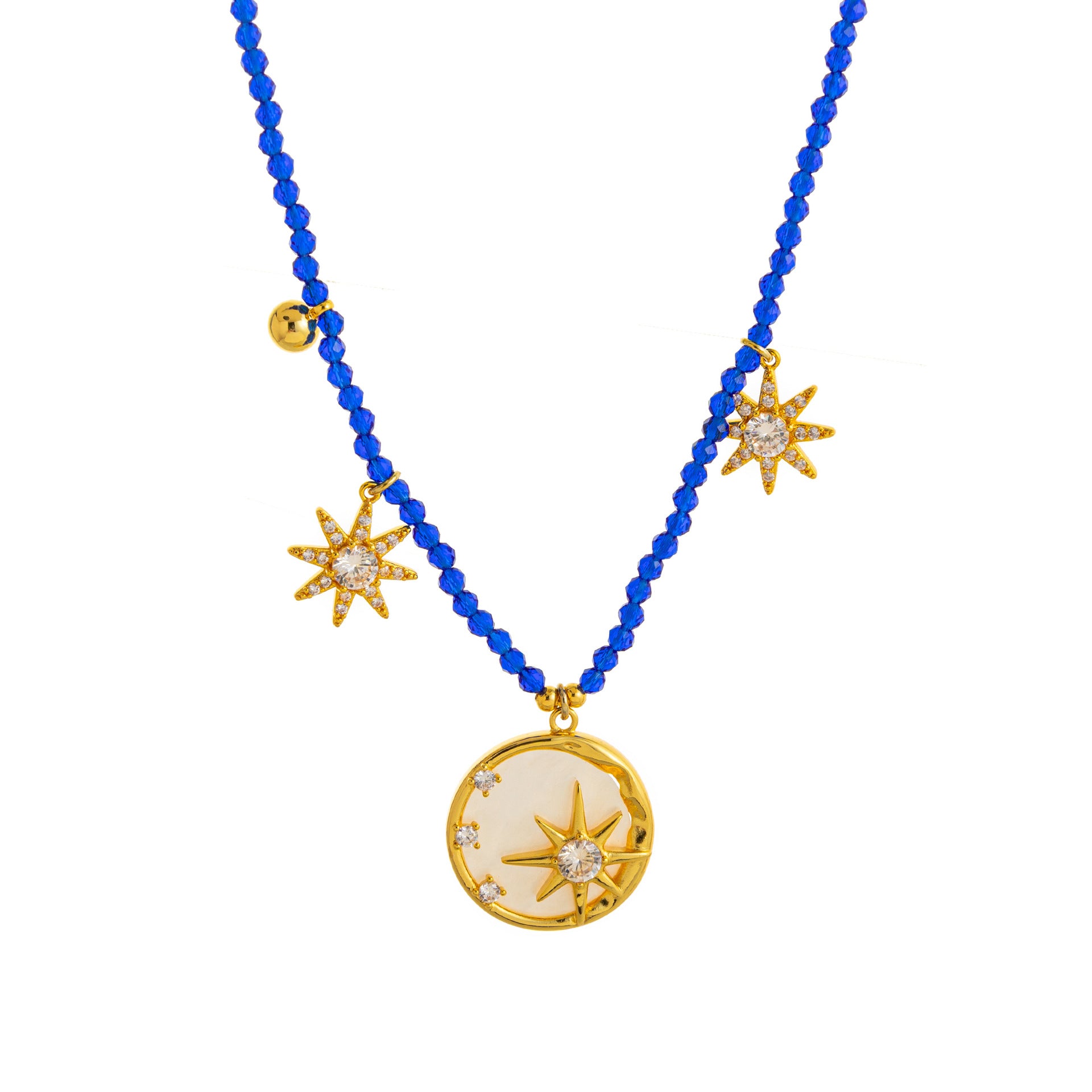 • Celestial elegance meets contemporary design in this Star Moon Beaded Necklace. Crafted with precision, the piece features delicate beaded detailing that frames celestial-inspired charms, creating a sophisticated focal point. The refined construction ensures durability while maintaining an effortlessly chic aesthetic. Perfect for layering or wearing solo, this necklace transitions seamlessly from day to evening wear. An essential addition to any jewelry collection seeking understated luxury and timeless appeal.