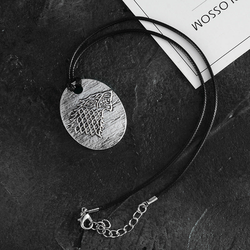 • As an industry expert, I assure you that the Stark Wolf Pendant Leather Rope Necklace is a cool addition to any outfit. Made of high-quality leather, this necklace offers both style and durability. Show off your unique sense of style and embrace your inner wild with this statement piece.