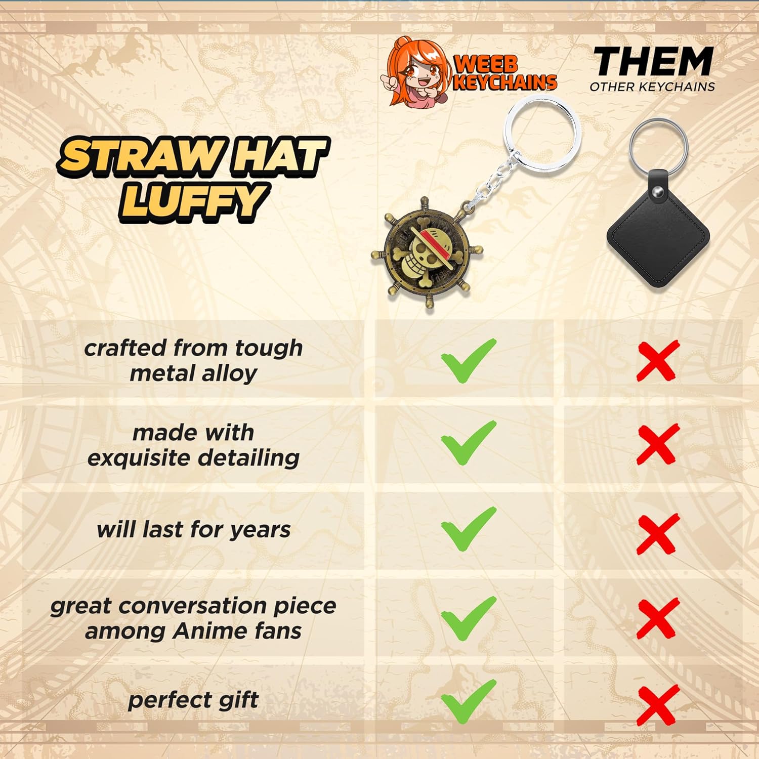 • No Mid Merch: While others flake, fade, or break, your One Piece key chain stays battle ready. Killer detail, zero filler. Your One Piece anime merch is made for fans who don’t settle for weak sauce.