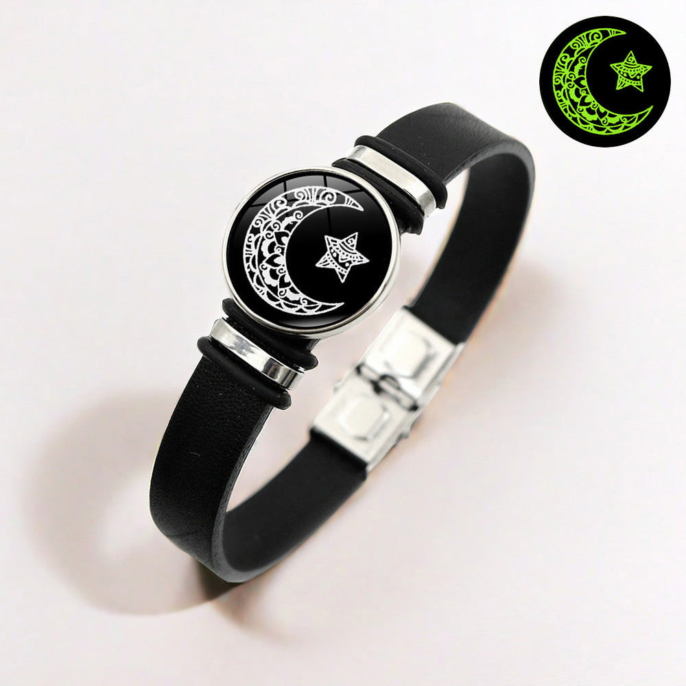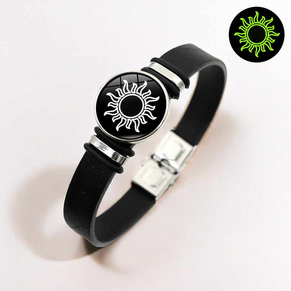 • Sun and Moon Couple Leather Luminous Bracelet Embrace celestial symbolism with this sophisticated leather bracelet set designed for couples. Each piece features luminous accents that gently glow in low light, creating an enchanting effect. The premium leather construction ensures durability and comfort for everyday wear, while the sun and moon motifs represent complementary energies and eternal connection. Perfect for those seeking meaningful accessories that blend style with sentimental value. Ideal as a gift for partners who appreciate thoughtful, wearable art.