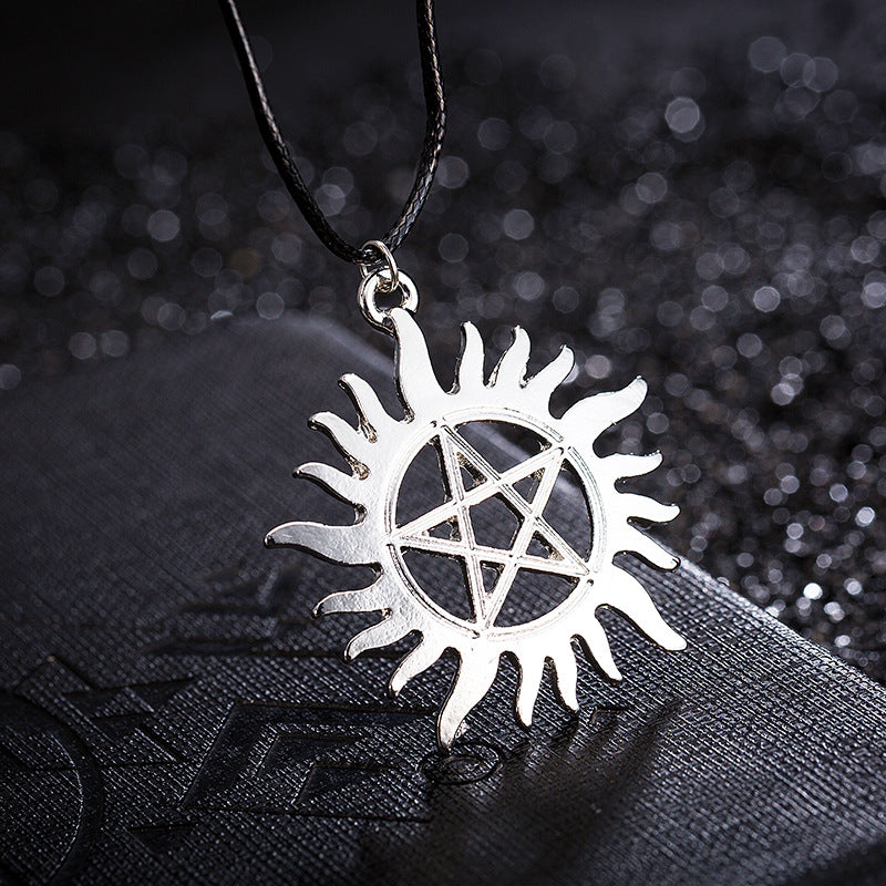 • This Supernatural Leather Rope Necklace features a cool design that adds a unique touch to any outfit. Made with premium leather and a durable rope, this necklace is both stylish and long-lasting. Elevate your look with this modern accessory.