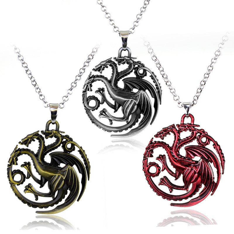 • Enhance your style with the Targaryen Dragon Stark Wolf Necklace. The unique design featuring a dragon and wolf will make you stand out in any occasion. Made from high-quality materials, it's not only cool but also durable, ensuring it will be a long-lasting addition to your wardrobe. Perfect for fans of the popular TV series.