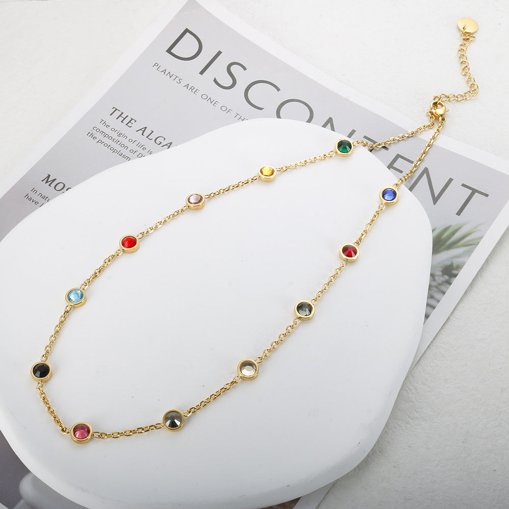 • This Taylor Colored Diamond Collarbone Chain adds a touch of chic sophistication to any outfit. Featuring a delicate collarbone chain adorned with dazzling colored diamonds, this piece is the perfect accessory for any fashion-forward individual. Elevate your style with this unique and elegant addition to your jewelry collection.