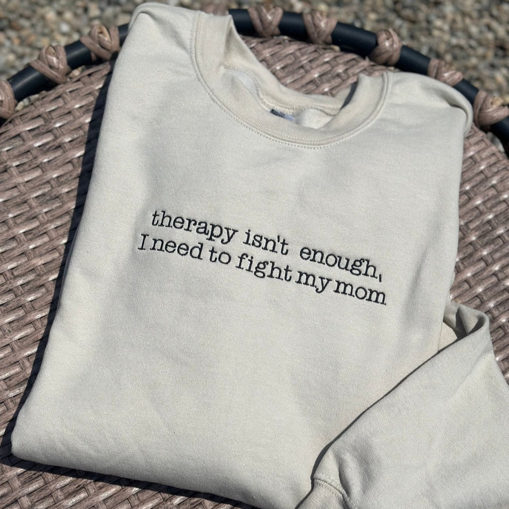 • "therapy isn't enough i need to fight my mom" Embroidered Sweatshirt