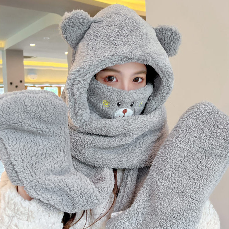 • Stay warm and cozy this winter with our Thickened Warm Bear Scarf Hat and Gloves Set. Made with the softest materials, this set will keep you warm and comfortable while also adding a touch of cuteness to your outfit. Trust us, you won't want to leave home without it.