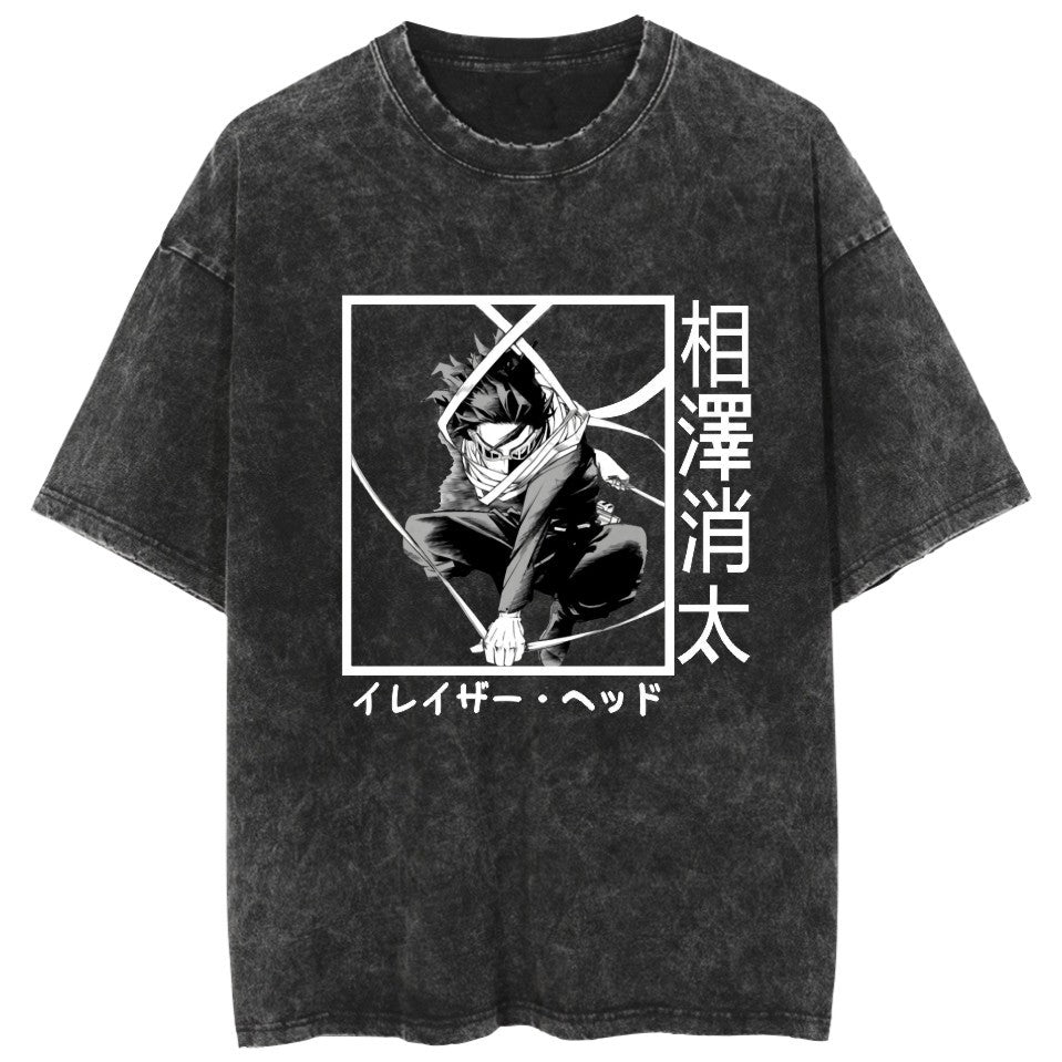 • This crew neck T-shirt features a distinctive anime pattern crafted with a washed finish for a relaxed, lived-in look. Its loose fit ensures all-day comfort and ease of movement, making it ideal for casual wear. Expertly designed to combine style and comfort, this piece adds a unique edge to your everyday wardrobe.