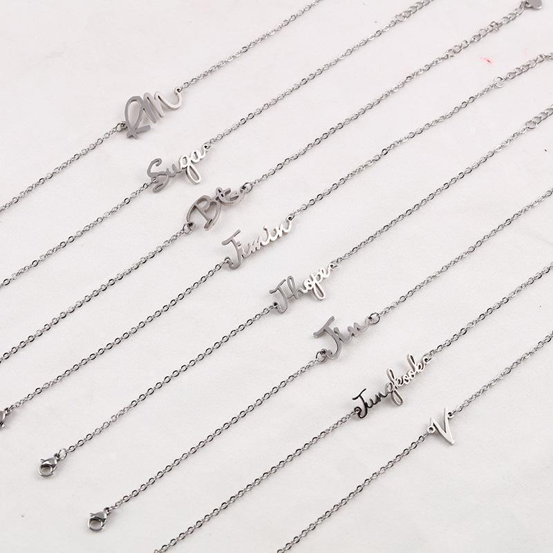 • This chic Trendy BTS Letter Necklace is the perfect addition to any trendy outfit. With its sleek design and stylish letter pendant, it's sure to make a statement. Made with high quality materials, it's durable and long-lasting. Boost your style and showcase your love for BTS with this unique necklace.