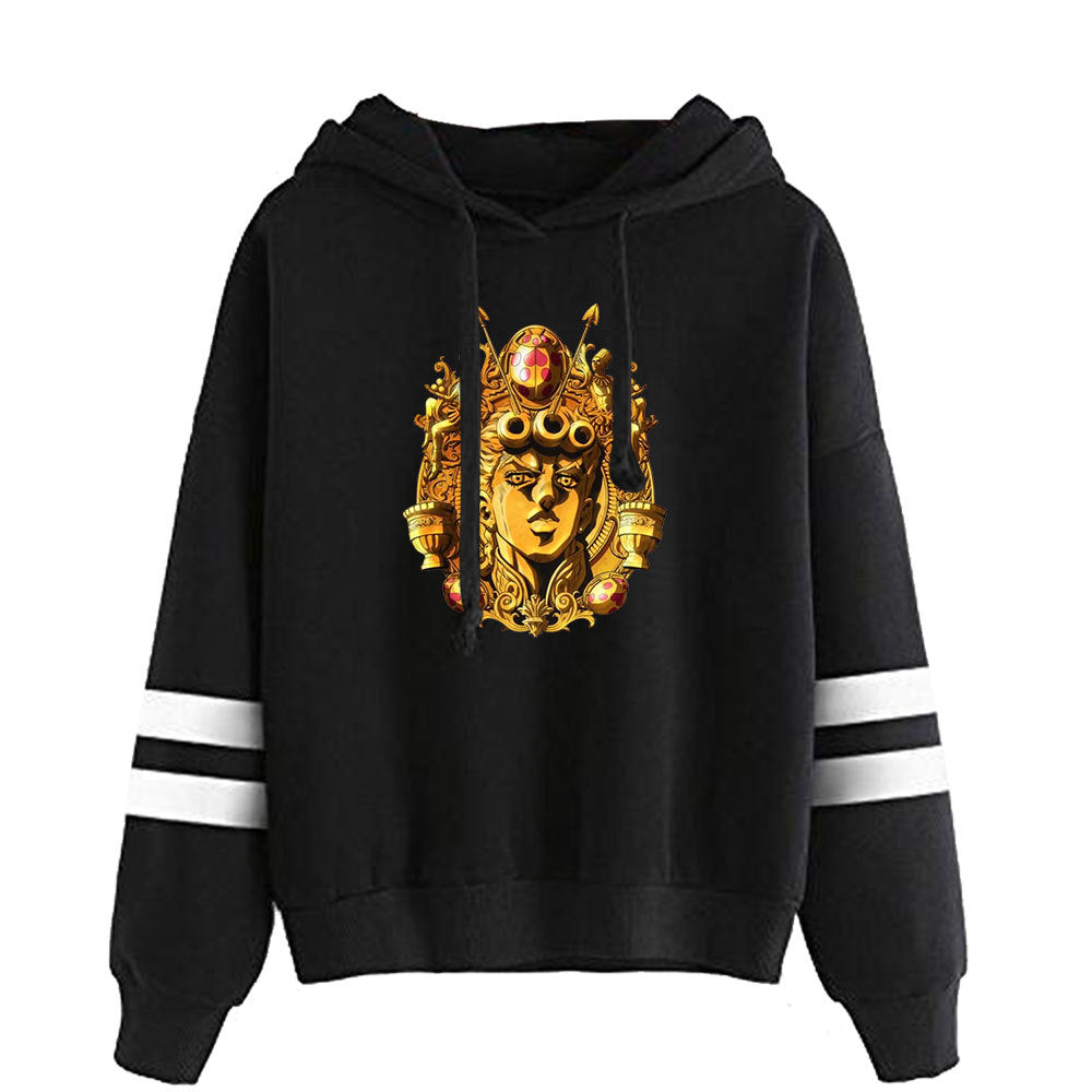 • Step up your street style game with our Trendy JOJO Anime Printed Striped Casual Hoodie. Made with a loose fit, this hoodie offers comfort and versatility, making it perfect for any occasion. Rock the latest anime trend with this must-have hoodie.