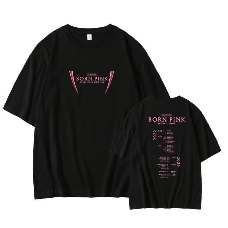 • Expertly crafted for comfort and style, the Trendy Kpop BORN PINK Short-sleeved T-shirt is the perfect addition to your wardrobe. With a loose fit, this shirt allows for unrestricted movement and breathability. Stay on trend and show your love for Kpop with this must-have piece.