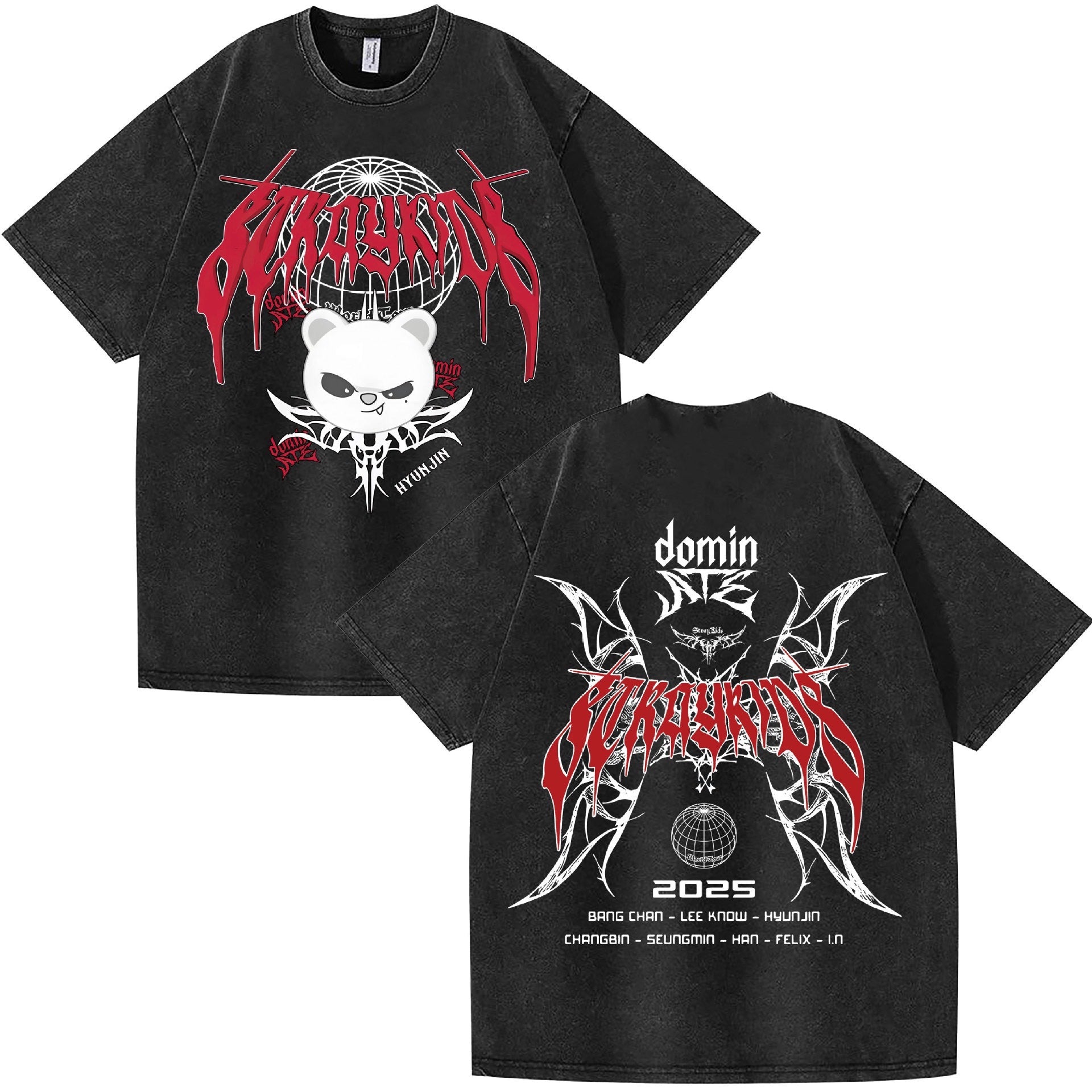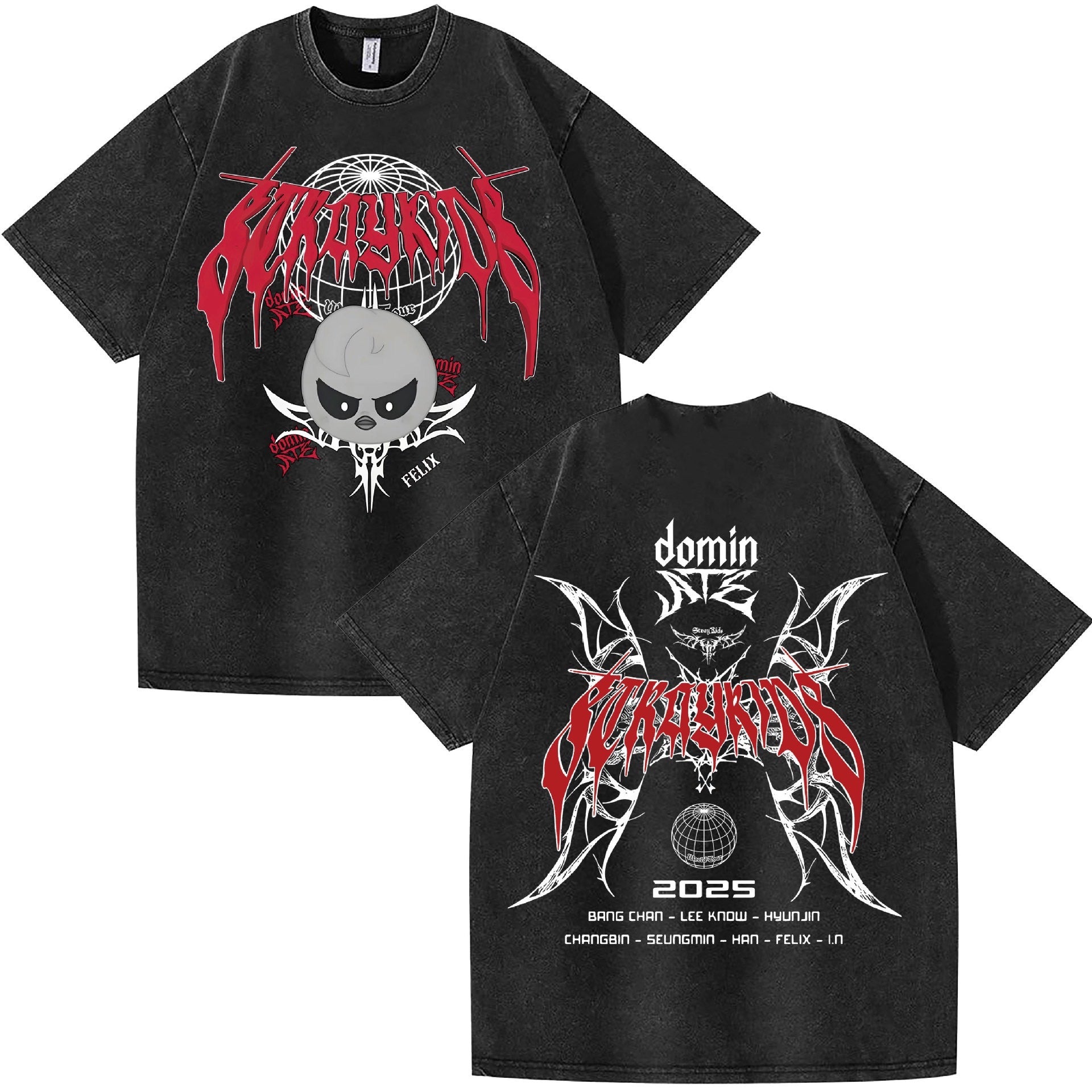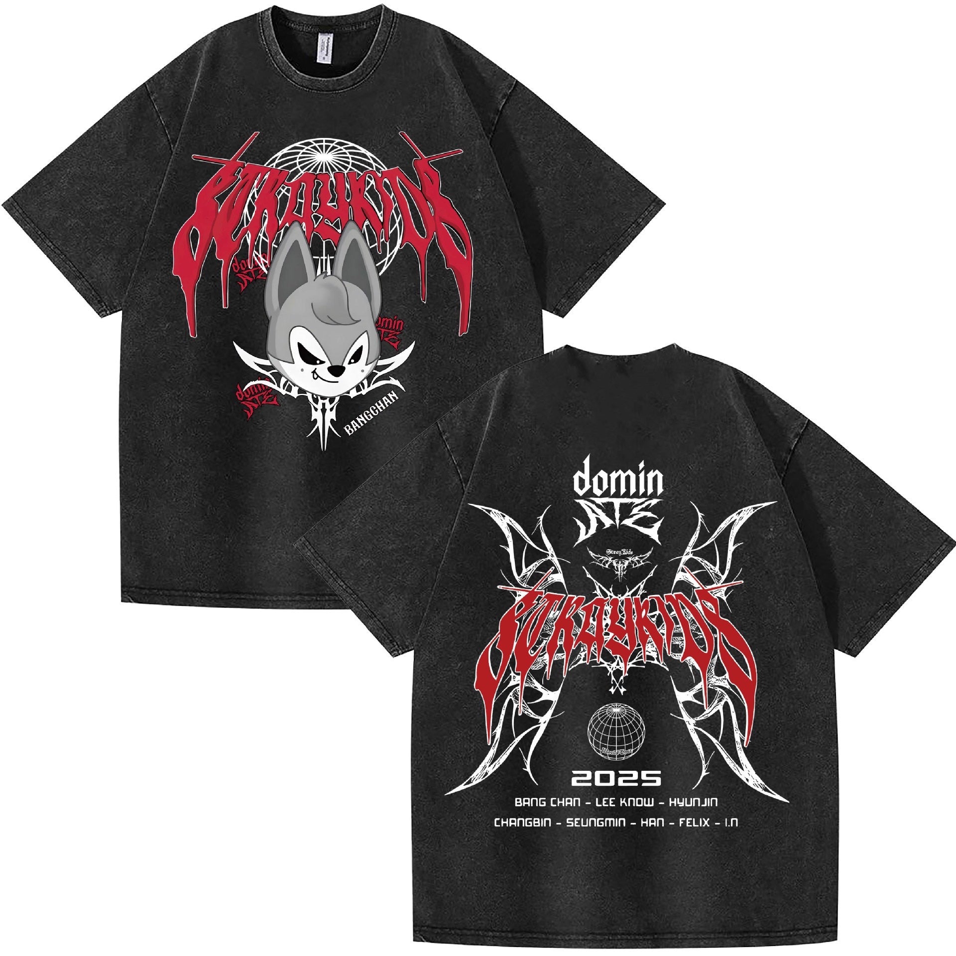 • This Trendy Kpop Logo Dominate Washed T-shirt combines casual style with a distinctive edge. Featuring a washed finish for a vintage look and a bold Kpop-inspired logo, it offers both comfort and statement appeal. Perfect for fans seeking to showcase their passion with a relaxed yet fashionable fit.