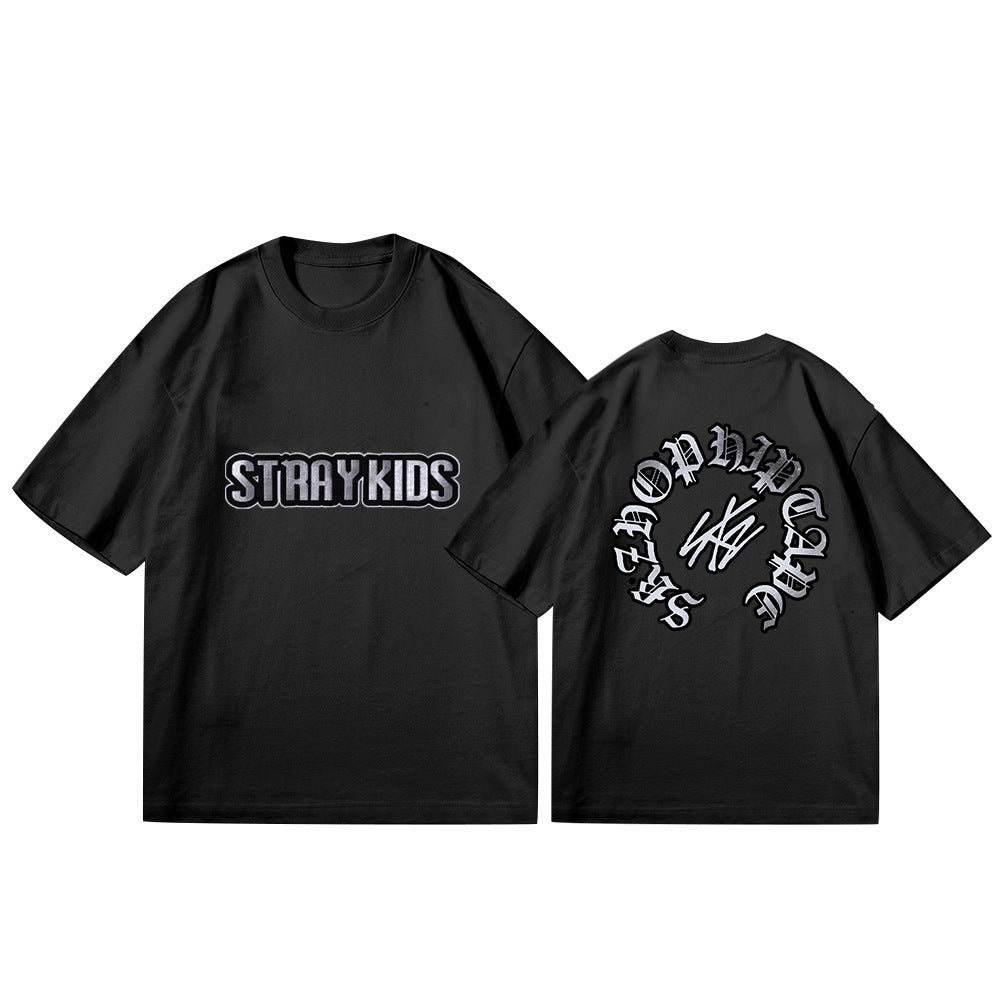 • This trendy Kpop short sleeve t-shirt features a loose fit for comfort and style. Made for fans of the popular Korean music genre, this t-shirt is perfect for casual wear or showing off your love for Kpop.