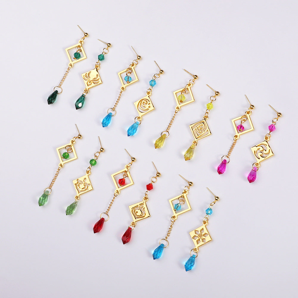 • These Trendy Seven Elements Game Earrings feature designs inspired by the popular game, Genshin Impact. As a fashion statement, they are a must-have for fans of the game, showcasing your passion in a subtle yet stylish way. Made with high-quality materials, they are both durable and eye-catching. Show off your love for Genshin Impact with these unique earrings.