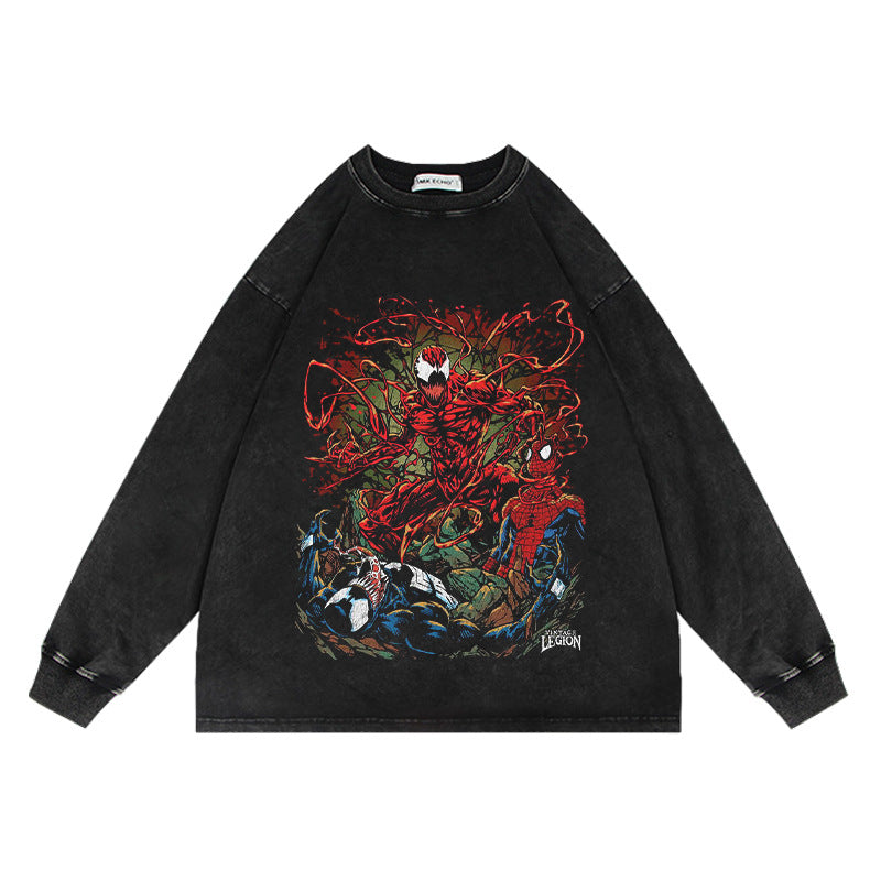 • Embrace bold streetwear aesthetics with this expertly crafted crew neck sweatshirt featuring striking Venom-inspired graphics. The washed finish delivers an intentional, vintage-worn appearance that elevates casual styling while maintaining contemporary appeal. Constructed from quality fabric, this piece balances comfort with visual impact, making it an essential addition to any modern wardrobe. Perfect for layering or standalone wear, it transitions seamlessly from street to studio. The timeless crew neck silhouette ensures versatile pairing with your existing collection, while the distinctive graphic design serves as a conversation starter. Ideal for enthusiasts of comic-inspired fashion and those seeking statement-making basics.