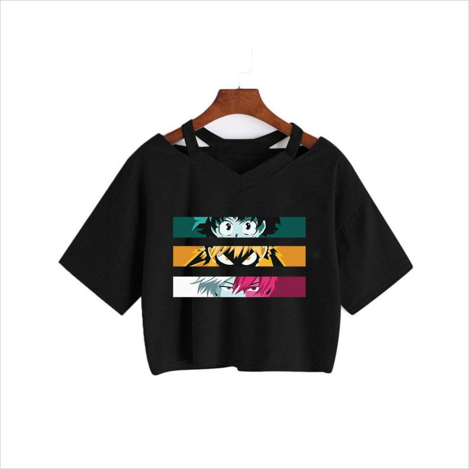 • This trendy crop tee is the perfect choice for a casual and stylish look. With its flattering V-neck and short sleeves, it's a must-have for any fashion-forward woman. Add a touch of anime flair to your wardrobe while staying comfortable and chic.