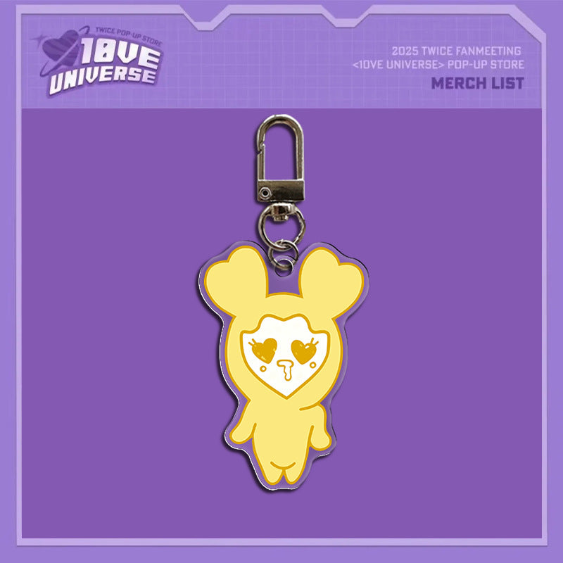 • Adorable acrylic keychain featuring beloved TWICE LOVELYS cartoon characters. Lightweight and durable, this charming accessory adds a playful touch to your keys, bags, or collection. Perfect for fans seeking a cute way to express their love for the characters. The vibrant design and quality craftsmanship make it an ideal gift or personal keepsake.