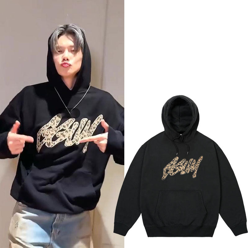 • TXT Album GGUM Leopard Print Pullover Hoodie Elevate your casual wardrobe with this striking pullover hoodie, featuring the iconic leopard print design inspired by TXT's GGUM album aesthetic. Crafted from premium fabric, this piece delivers both comfort and style for everyday wear or fan appreciation. The classic pullover silhouette pairs effortlessly with jeans, joggers, or layering pieces, making it a versatile addition to any collection. Perfect for those who appreciate bold patterns and quality construction