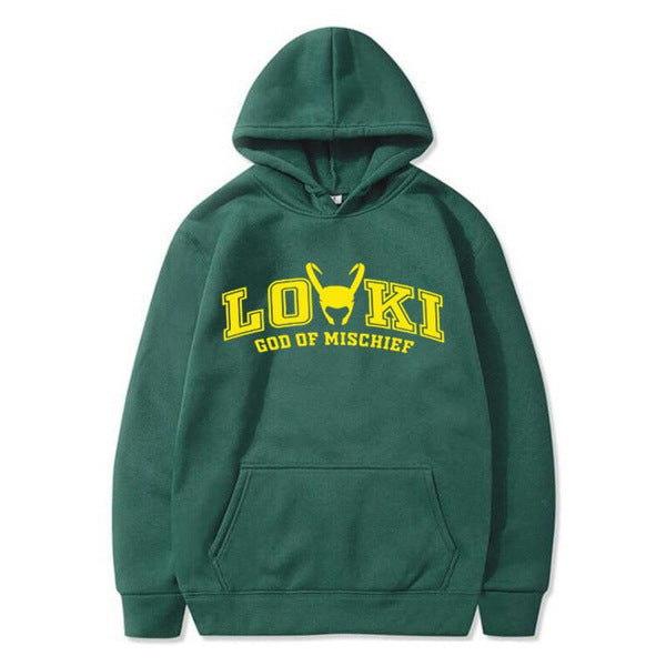 • This Loki hoodie is designed for everyday comfort, with a cozy fit and loose style. Perfect for casual wear, it features a bold letter print for added style. Stay warm and comfortable while showcasing your love for the iconic trickster.